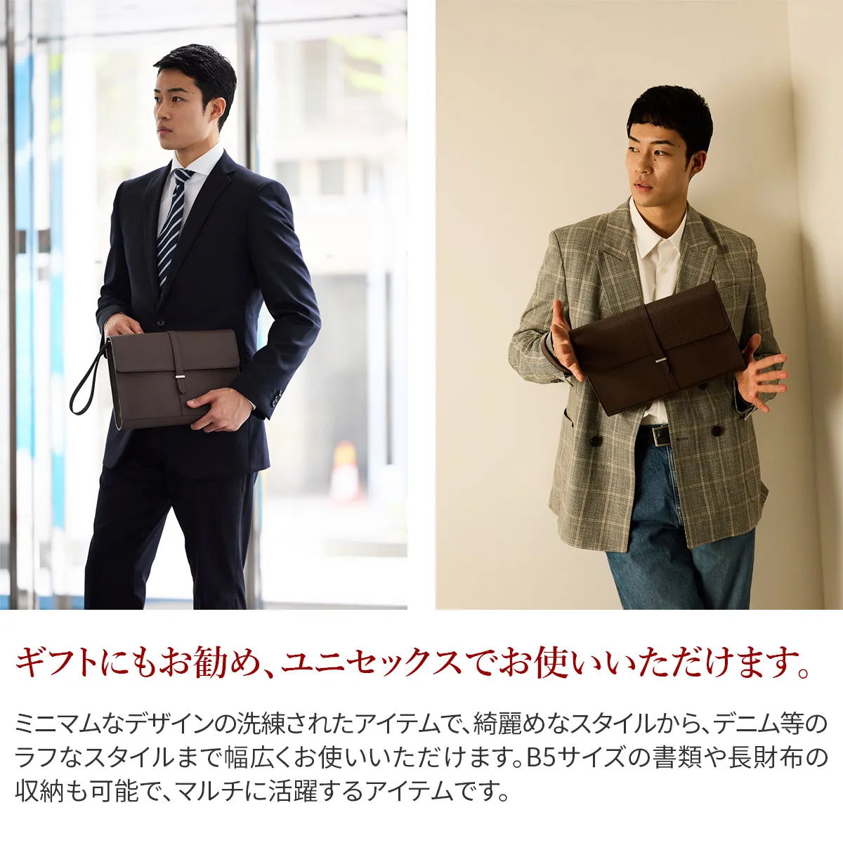 Daniaの職人は様々な経験、年齢、背景を持っており、それぞれが専門領域で独自の特色を発揮しています。 40年以上にわたるハンドメイド技術の経験は、専門家の独自のこだわりであり、彼らは絶えず自己を更新し、 イタリアとフランスのハイブランドの卓越した品質を維持し続けてきました。 そしてデジタル化による仕上げは、イタリアの最も才能ある若手職人によって担当されています。 Daniaは、コラムマシン、デジタルカッティング、ロングアームマシン、360度アームマシンなどが備わっており、常に最新の技術を提供。 長年にわたり培われた職人技と最新技術の融合が、高品質なプロダクトの提供を可能にしているのです。 見た目以上の収納力で、B5サイズの書類の収納も可能です。 ストラップはワンタッチで着脱が可能なので、アレンジをお楽しみいただけます。