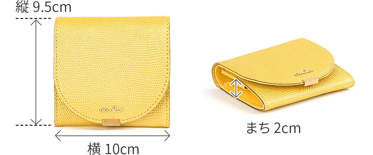 ローマ神話に登場する月の女神の名前に由来する「ルナ」シリーズ。ロゴブローチが、さりげなく煌めきを添えて。つややかなリザード型押しは、上品な輝きを放ち、また傷が付きづらいのも特長です。ニュアンスカラーのベースに、コバはダークトーンでひきしめて。変わりゆく時を、たおやかに生きる女性に。 月をイメージした優雅な曲線のフラップデザインが、優しい印象のお財布。小さいけれどキラキラと目を惹くメタリック加工が施されています。十分な充実した収納スペースを設けた、コンパクトなバッグにも収まりやすいサイズ感のアイテムです。