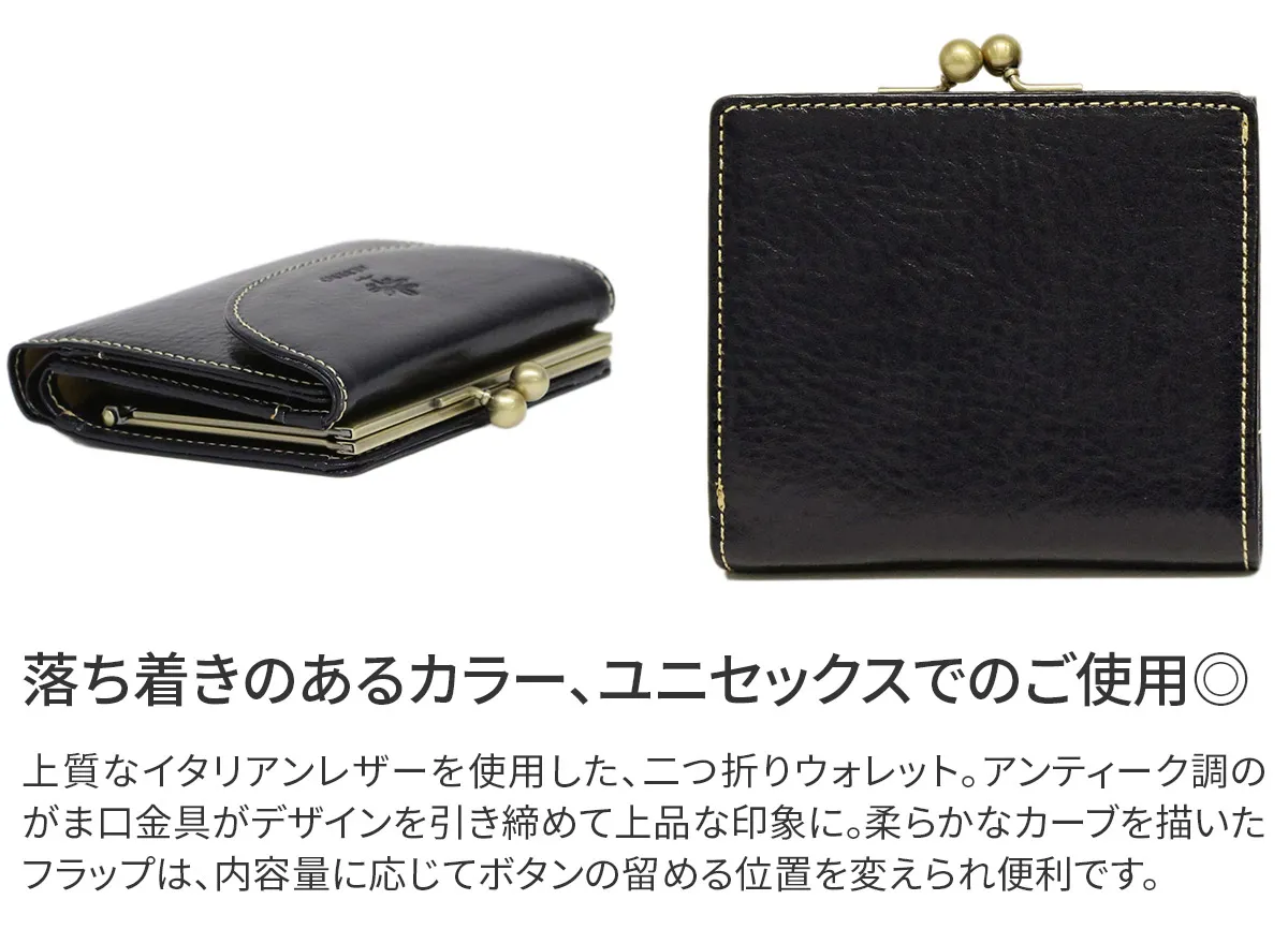 ハンティングキャップがモチーフ。ユニセックスラインBERRETTA。 牛ショルダーをタンニンでなめしオイルを含ませたバケッタ製法に艶出しを施した素材。 深みのある色合いに、滑らかなイタリアンレザーがしっくりと手に馴染む逸品。カード入れが6ヶ所にオープンポケットが4ヶ所と充実した収納が魅力的。紙幣入れは2ヶ所、小銭入れは仕切り付きで硬貨の他に、小物や鍵の収納に◎ 使う程にしなやかに変化し、艶の増すエイジングを楽しめます。