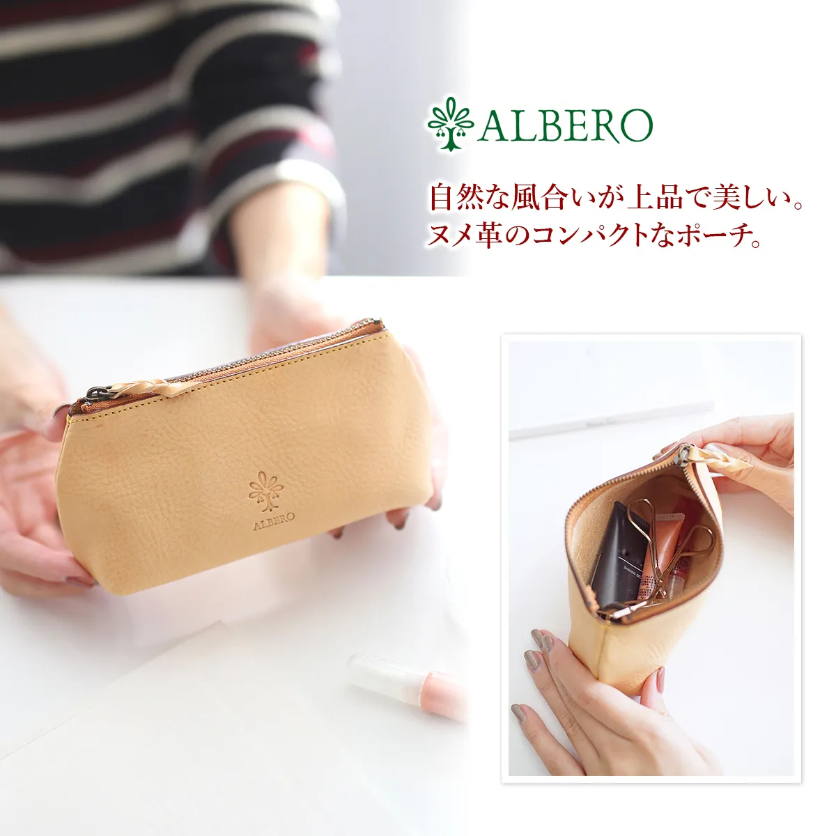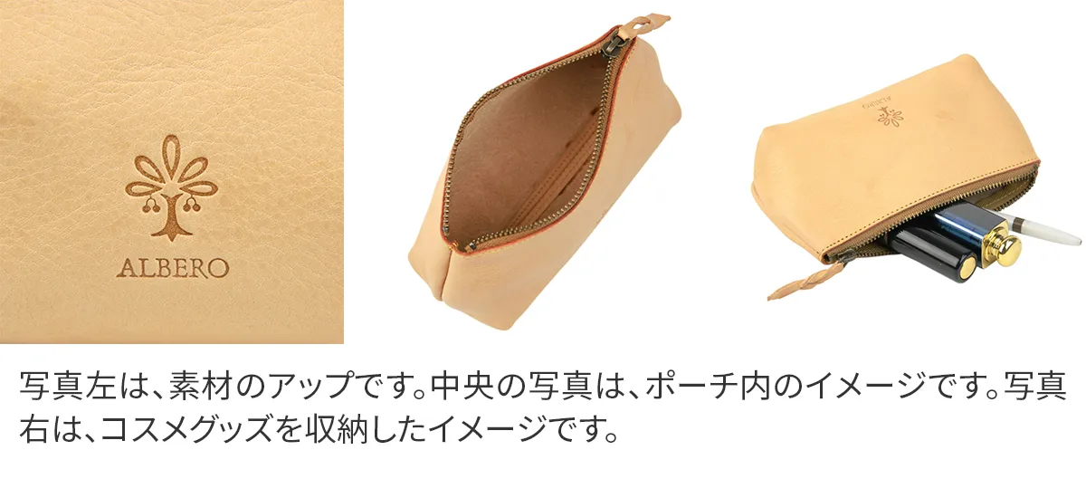 ALBERO(アルベロ) NATURE(ナチュレ) ヌメ革ポーチ(小) 5311 小振りながら存在感を放つ革小物 上品で飽きのこない洗練されたデザインが魅力的