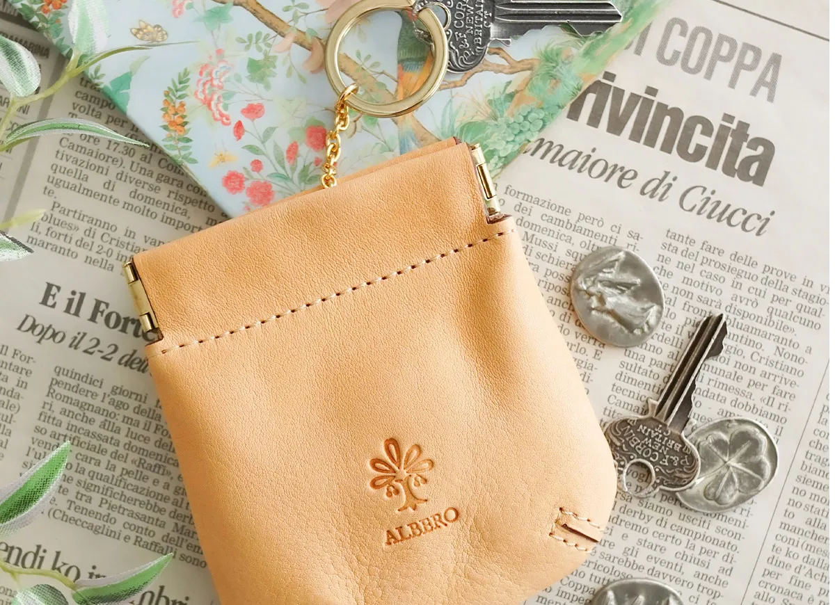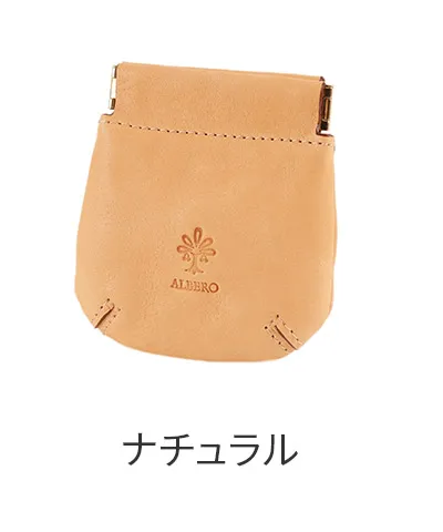「自然を大切にしたい」はALBEROのフィロソフィー。Naturaleは、それを象徴するシリーズ。牛革ショルダー部を植物タンニンでなめし染色を施さず使う程に飴色に変化して光沢が増す素材。 ワンアクションで開閉できるバネ式の開口部と、柔らかな印象が魅力のアイテムです。お使いいただく度に光沢が増し、飴色に変化してゆき、美しい経年変化を楽しめます。硬貨を収納してコインケースとしてもご使用いただけます。