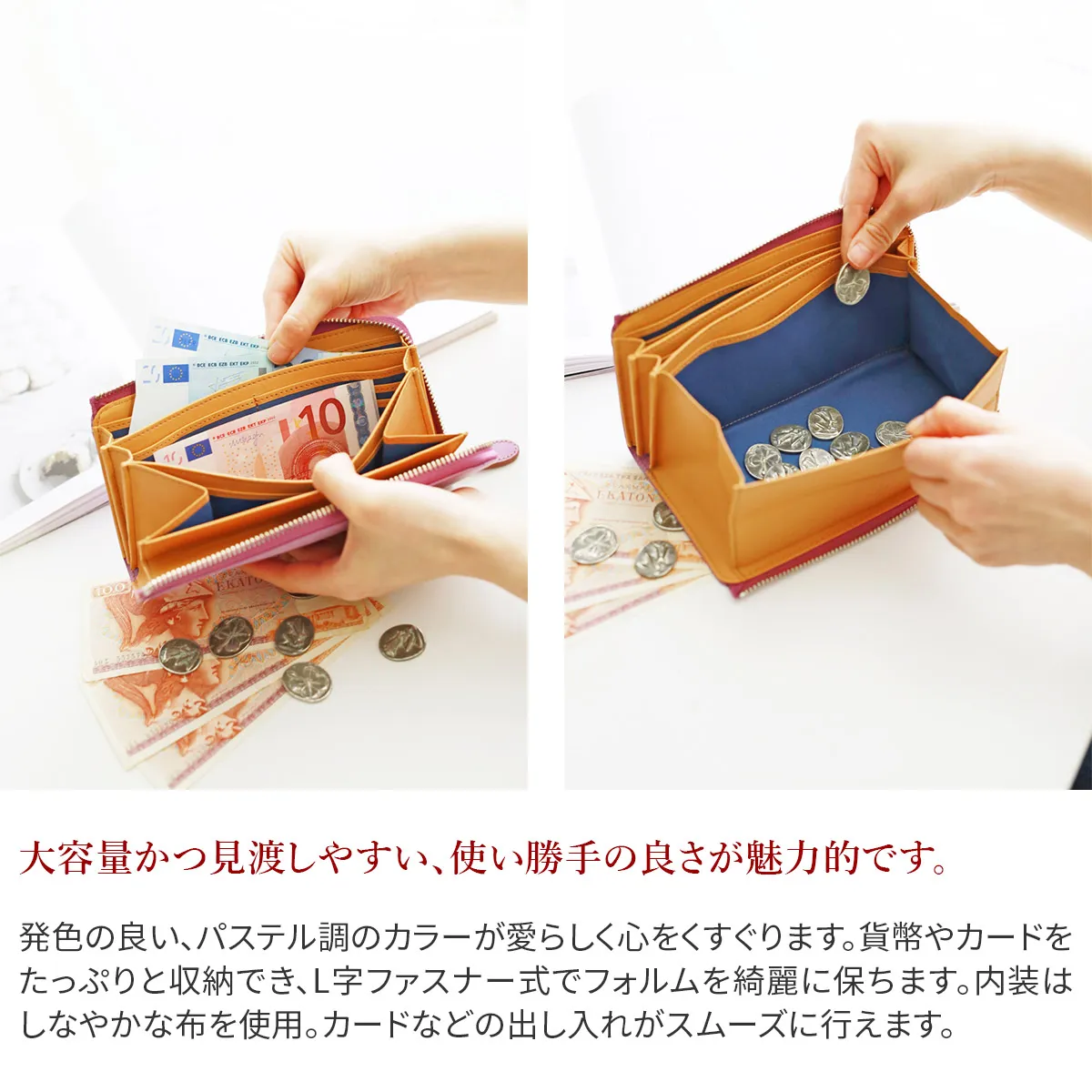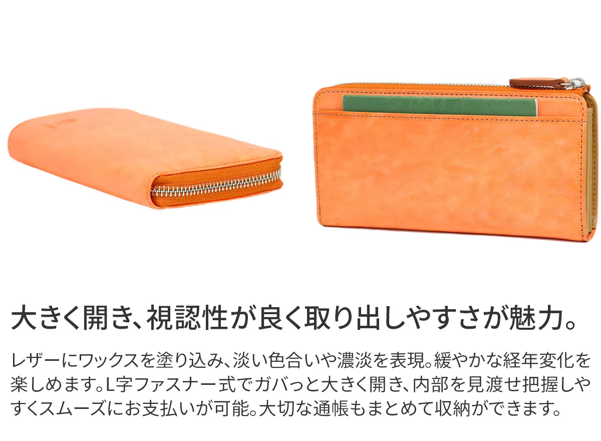 "MONTE BIANCO"白い山・モンブラン(伊)表は牛革ショルダー部分をタンニンで鞣し、柔らかくミルドしたレザーにホワイトワックス加工を施したイタリアンレザーを使用しています。 ワンアクションで内部へアクセスができ、スムーズにお支払いが可能。豊富なカードポケットとギャルソンタイプで大きく開く小銭入れ、お札入れは2ヶ所備えられています。ホワイトワックス加工を施した、シンプルなデザインに淡い色や濃淡を楽しめるアイテムです。