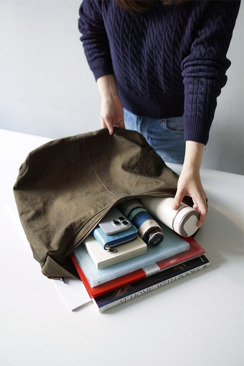 10号帆布にバイオ加工を施した、ナチュラルで味わい深いバイオ帆布を使用。自然の力で生み出された美しいムラ感が魅力です。