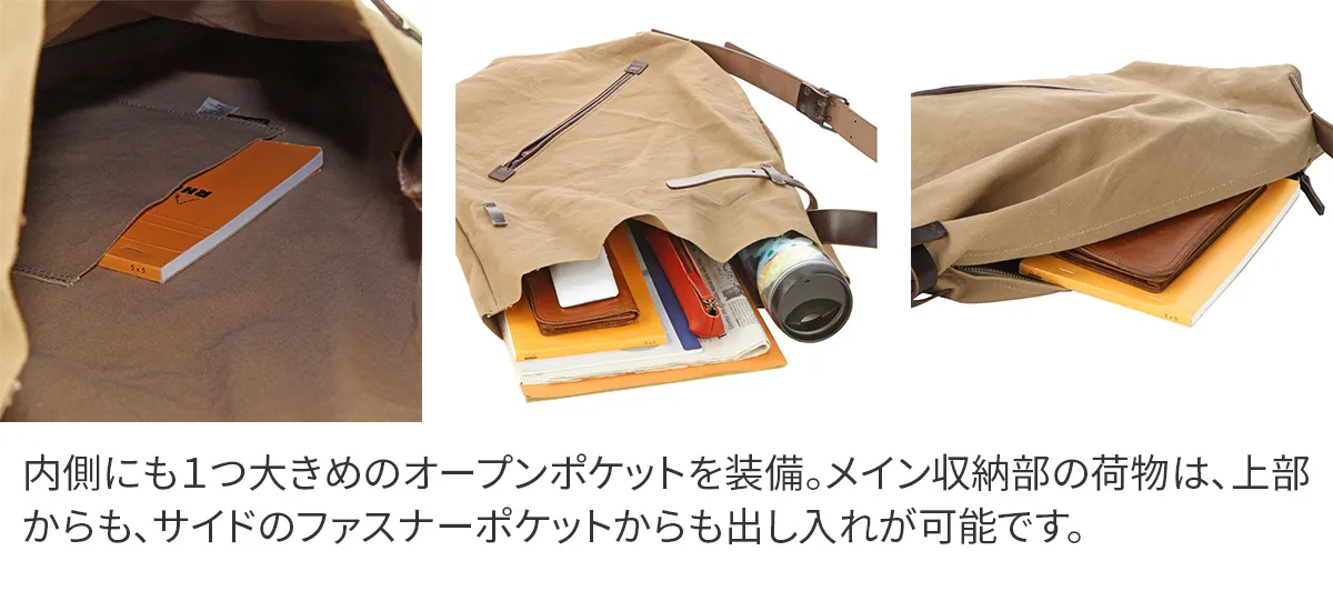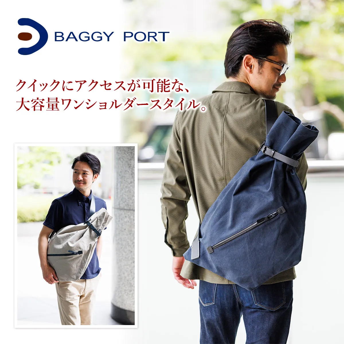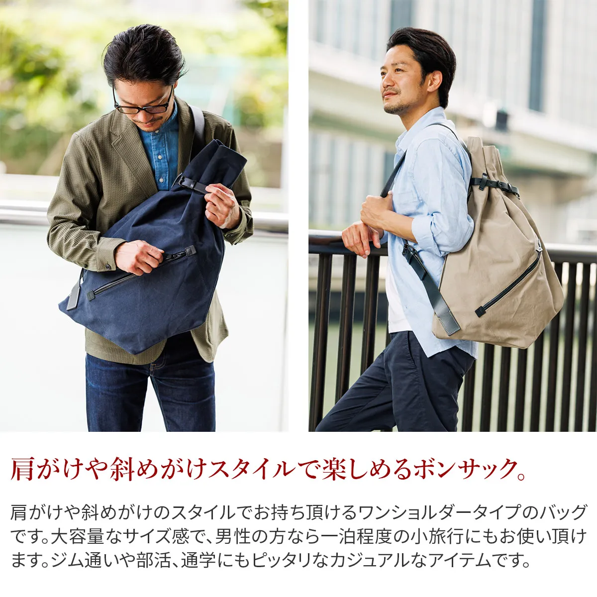 BAGGY PORT(バギーポート) ウォッシュ加工6号帆布×オイルレザー ボンサック TEPP-003 後姿に映えるカジュアルなバッグ。 帆布とレザーの素材コンビも◎
