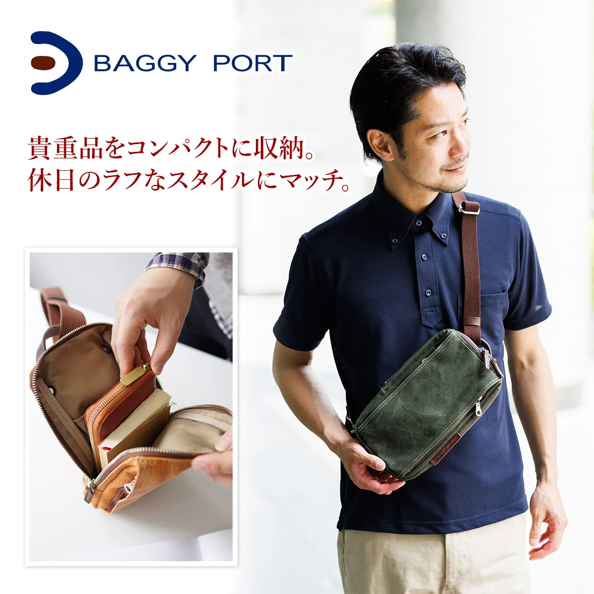 BAGGY PORT(バギーポート) 8号帆布カラーコーティング FACE フェイス 2WAYボディーバッグ YNM-1305 カラーコーティングされた風合い豊かな帆布を使用 ショルダーバッグとしても機能する優秀なアイテム
