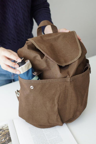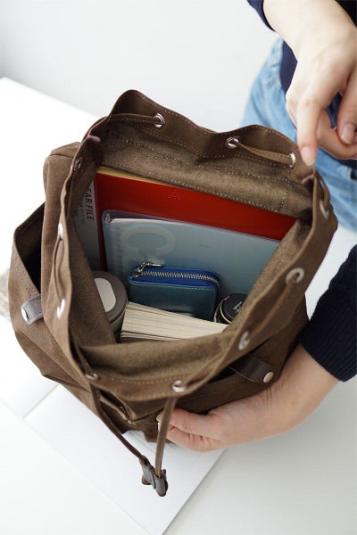 アメリカ軍でテント用として使用されていた生地のヨコ糸を、綿から難燃性の高いモダクリル繊維に変更。更に難燃顔料コーティングを施すことにより防水・難燃性を有した機能性素材になりました。一般的な傘の耐水圧は250~500mmですが、この生地は1000mmの耐水圧で、水の浸透をしっかり防いでくれます。 軽さと耐水性を合わせ持つ「テント生地」を使用しています。こちらのかぶせリュックは間口が大きく開く絞りタイプです。背面のサイドにはメイン収納部に直接アクセスできるファスナーが付いており、利便性にも優れています。細部にオイルレザーを使用し、重厚感をプラスしたデザインに仕上がっています。ショルダーベルトの幅が広く、肩への負担を軽減させる設計となっております。親しみのあるクラシックなデザインに高機能帆布による軽さと機能性が加わり、幅広いお客様にお持ちいただけるアイテムとなっております。