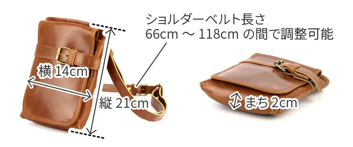 シザーケースを思わせる軽快デザイン。肉厚レザーの質感を存分に味わえるウエストバッグです。ショルダーベルトの付け方によって、腰に巻いたり、斜めがけとしても使える、2WAY仕様が嬉しい。 コンパクトなサイズ感ながら、適度なマチ幅があり、財布など必需品をしっかり収納できます。かぶせを捲くった前ポケットには、携帯等の小物も入れられて便利です。普段使いはもちろん、荷物の少ない日の通勤・通学や旅行時のセカンドバッグにも使えます。 かぶせをベルトで絞めたり、かぶせをベルトの上に掛けたりすることでスタイルの幅が広がります。 BAGGY PORTの定番素材、オイルバケッタを使用しています。 革に含んだオイルが、傷や汚れを自然に包み、味わいに変えていくのも魅力の一つです。