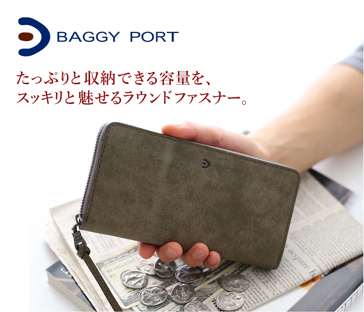 BAGGY PORT(バギーポート) ブオナ シリーズ ラウンドファスナー 小銭入れ付き 長財布 ZYS2400 使う程に艶やかに変化してゆくレザー素材、 本革の醍醐味を味わえる表情豊かな長財布。