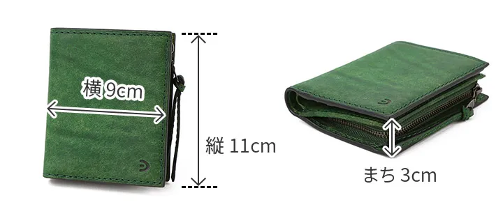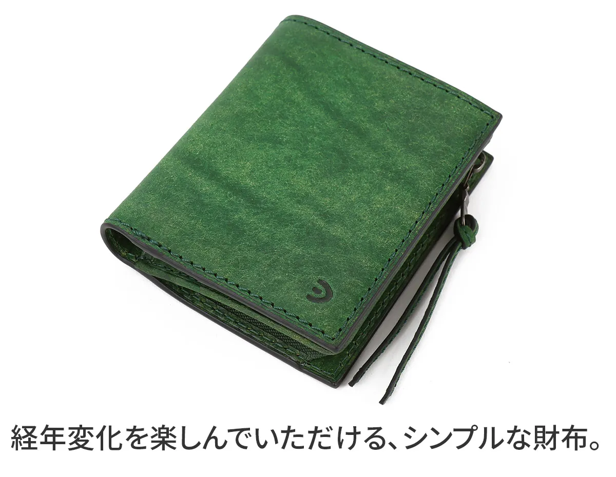 ブオナシリーズのハーフウォレット「ZYS-2402」より小さいミニハーフウォレットになります。 手に収まるミニマムウォレットでありながら、カード・ポケットは合わせて10ヶ所にあり、お札入れや小銭入れは2つに分かれており、通常サイズの財布と変わらない収納力です。外側に小銭入れが付いているので、スムーズなお会計ができます。コンパクトなのに使い勝手のいい、究極のミニマルウォレットです。 オイルを含んだ上質なイタリアンレザーにサンドペーパーと真鍮ブラシでブラッシングの加工を施しています。最初はサラッとマットな質感ですが、使い込むにつれて深い色味への変化と抜群のツヤを楽しんでいただけます。さらに、革全体に染み渡った油分によって、表面は驚くほどにしっとりとして手に馴染み、多少の水や乾燥からも革を守ってくれます。これは、牛脚油の主成分である「オレイン酸」による効果。オレイン酸は、お肌を乾燥から守ってくれる、人の皮脂に多く含まれている成分で、革にもよく馴染みます。オレイン酸は劣化に強く、乾燥もしにくいため、革の内側の適度な水分量を保ちながら、水分が抜けすぎて固くならないように保ち続けてくれます。 【プエブロレザー】 イタリアのトスカーナ州にある「バダラッシ・カルロ社」という世界的に有名なタンナー により、生後2年以上の雌牛の原皮のショルダー部分を使用しバケッタ製法で作られています。10世紀以上の歴史を持つイタリア伝統のバケッタ製法は、化学薬品を一切使用することなく、植物性タンニンにて鞣された牛革に時間をかけて純度の高い「牛脚油」を加脂していく製法です。