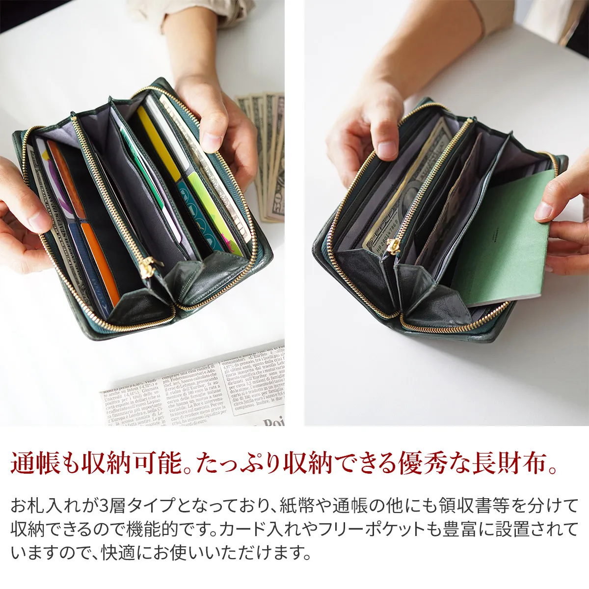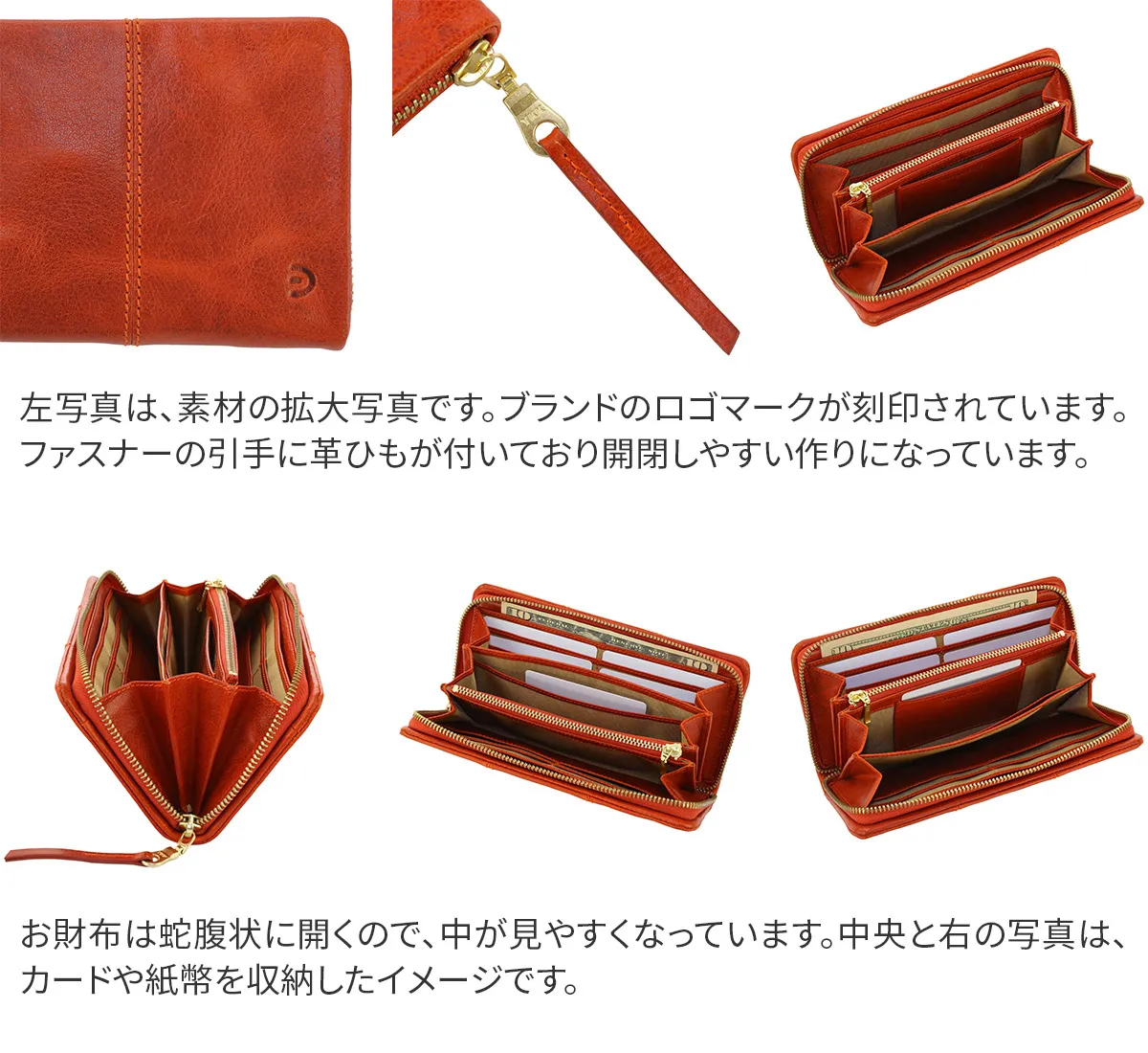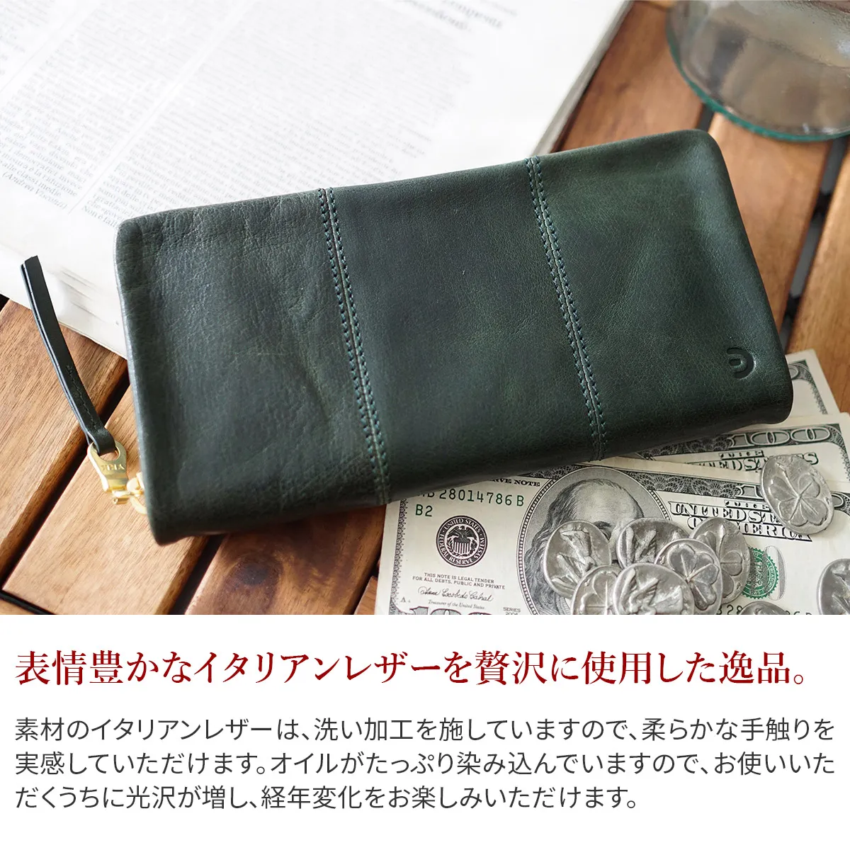 スマートなフォルムを保ってお持ちいただけるラウンドファスナー開閉の長財布です。カード収納も充実しており、通帳も入るので使い心地が良く、機能的です。お使いいただく時間の経過と共に光沢感が増して、その時々の風合いをお楽しみいただけます。 100%植物タンニンなめしの革に手染めと洗い加工を施した後、シュリンクのような型押し加工を施しています。表情豊かなイタリアンレザーは、洗い加工により柔らかい手触りに仕上げています。オイルがたっぷり染み込んでいるので、オイルが動いて白化するのが特徴です。使い込むうちに光沢が増し、経年変化が楽しめます。