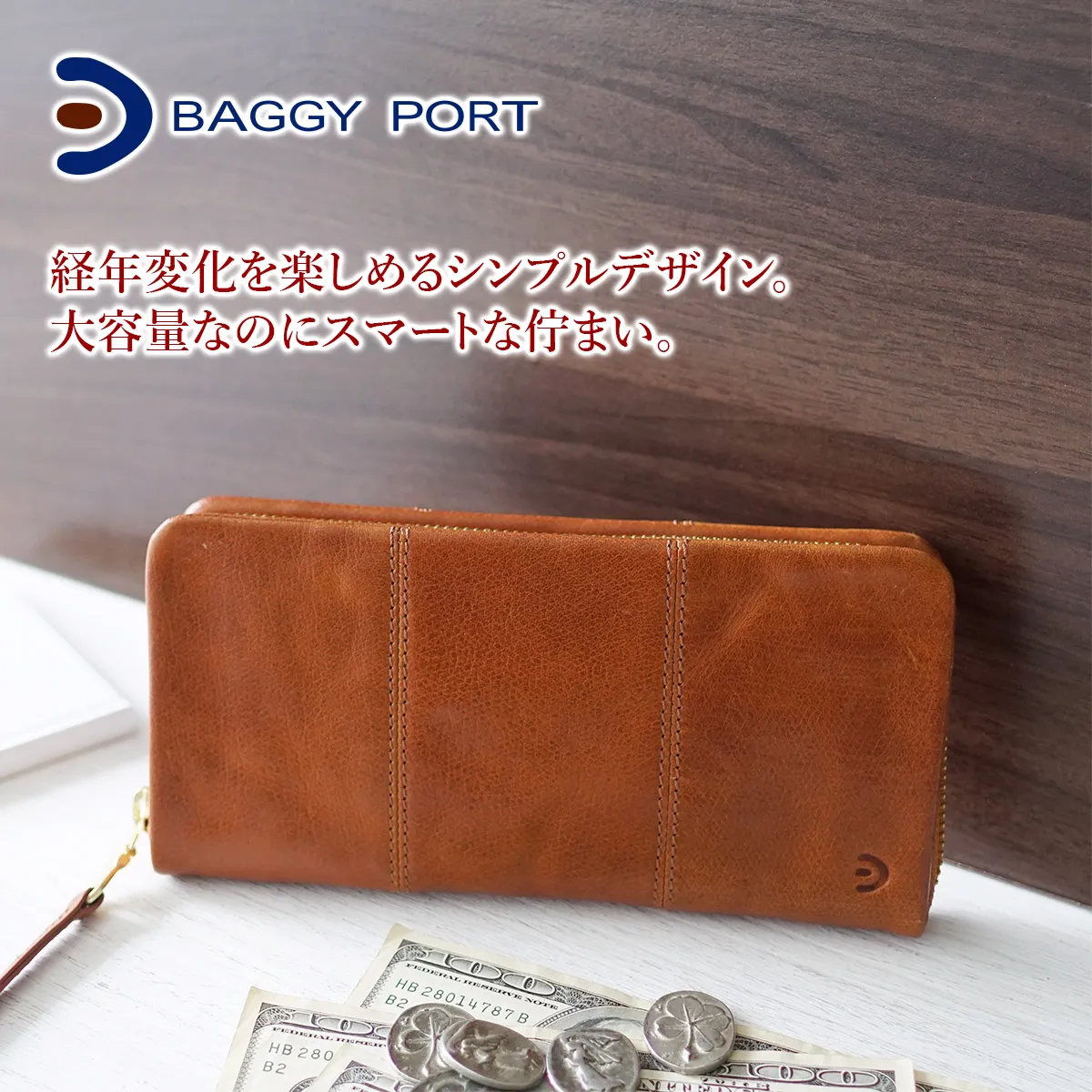 BAGGY PORT(バギーポート) ブリタニア 小銭入れ付き長財布(ラウンドファスナー式) ZKM-200 スマートに携帯できるロングウォレット 上品なカジュアルデザインが魅力的