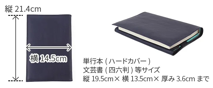 タンニン鞣しされたナチュラルで、しなやかな手触りのソフトヌメ革を使用しています。 読書の時間を上質なひとときにしてくれる、単行本(ハードカバー)サイズのブックカバーです。本の厚みに応じて、カバーを折り返してセットするので本にフィットしやすくなっています。豊富なカラーバリエーションで、読書好きなあの人へのプレゼントにも最適です。読んだ数だけ手に馴染む経年変化を是非楽しんでください。