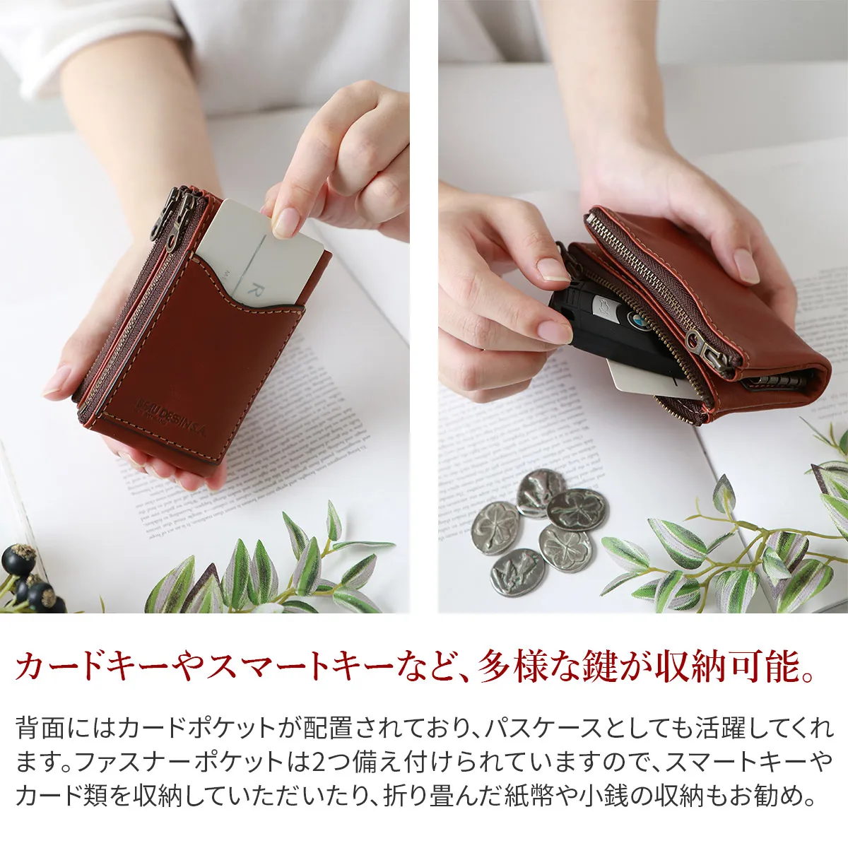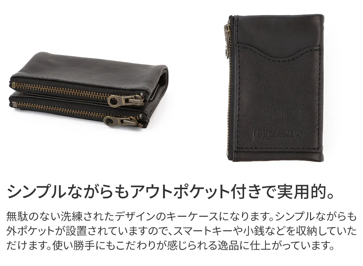 昨今、本革製品の中で、本当の意味でのナチュラルなレザーを見かけることが極端に少なくなっている中、タンニン鞣しされたナチュラルで、しなやかな手触りのソフトヌメ革を使用しています。国産のレザーではありますが、イタリアのトスカーナ地方産のレザーにインスパイアされたオリジナルのレザーが生まれました。デザインは無駄を削ぎ落とし、シンプルながらもアウトポケットの配置など、使い勝手にもこだわってデザインされています。 ポケットには、小銭や三つ折りにした紙幣、スマートキーを収納していただけますので、近場のお散歩などにも活躍してくれます。洗練されたシンプルなデザインですので、プレゼントのアイテムとしてもお勧めです。