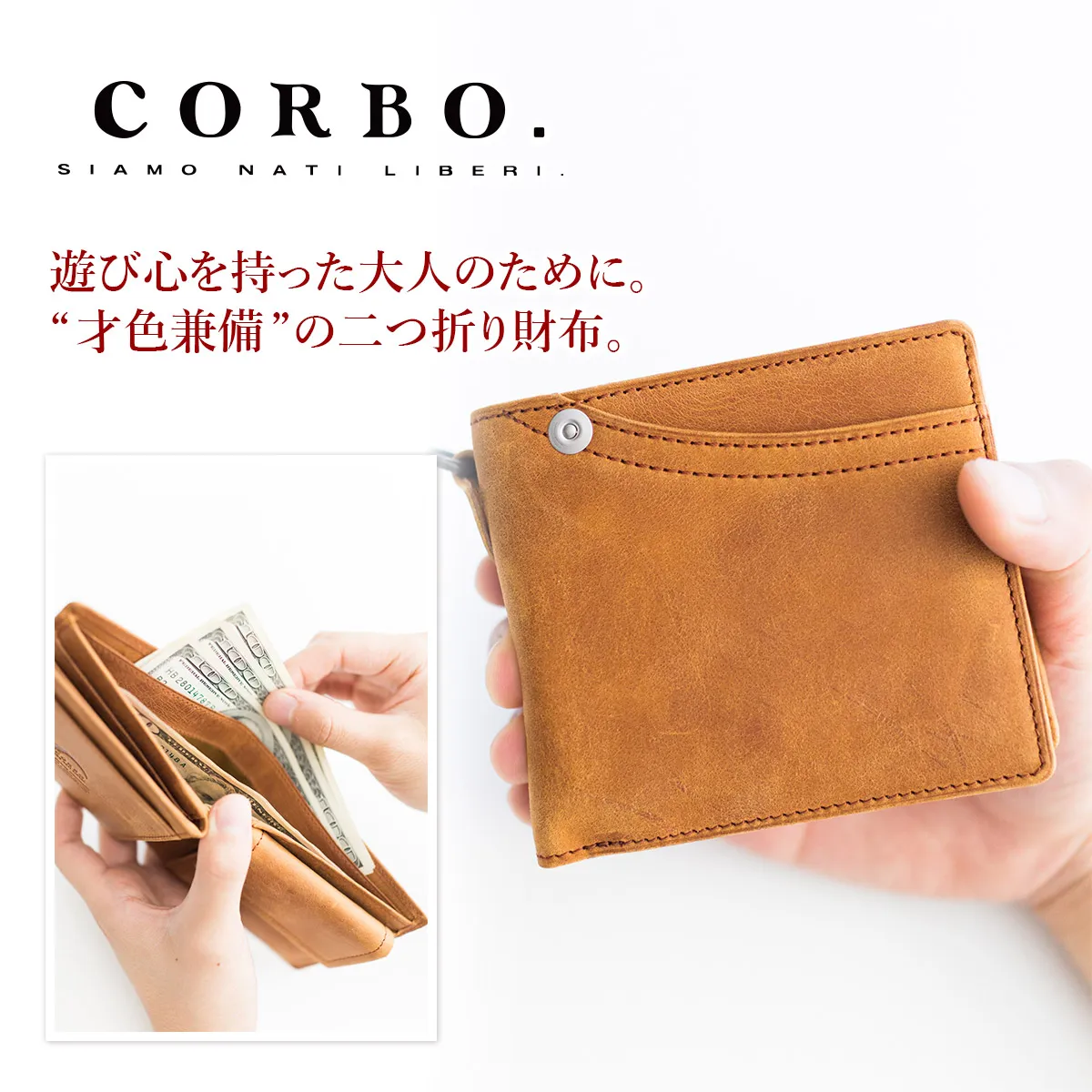 CORBO.(コルボ) -CLAY Works Horse- クレイワークスホース 小銭入れ付き二つ折り財布(横型) 8JF-9977