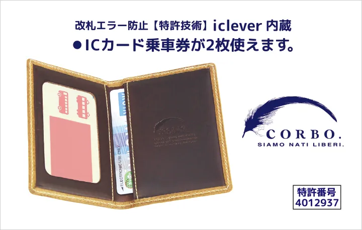 乗り換え定期などで、2種類のICカードをお持ちの方に朗報です。非接触型ICカード誤作動防止材が内蔵されており、前面裏面別けて収納することによりカードリーダーの読み込みエラーを防ぎます。スムーズに改札を通過できる、毎日の通勤通学の心強い味方です。 本体の皮革は、銀面を軽く擦り、染色とほどよいオイル加工で牛革の色や腰を ソフトに落ち着かせ、摩擦による焦がしの効果が出やすいワックス加工を施しています。素朴な雰囲気の皮革に合わせ綿糸風のスパン糸で縫製することで、デニムジーンズの糸への色移りのような表情を出しているため、どこか暖かみを感じるような仕上がりも魅力的。