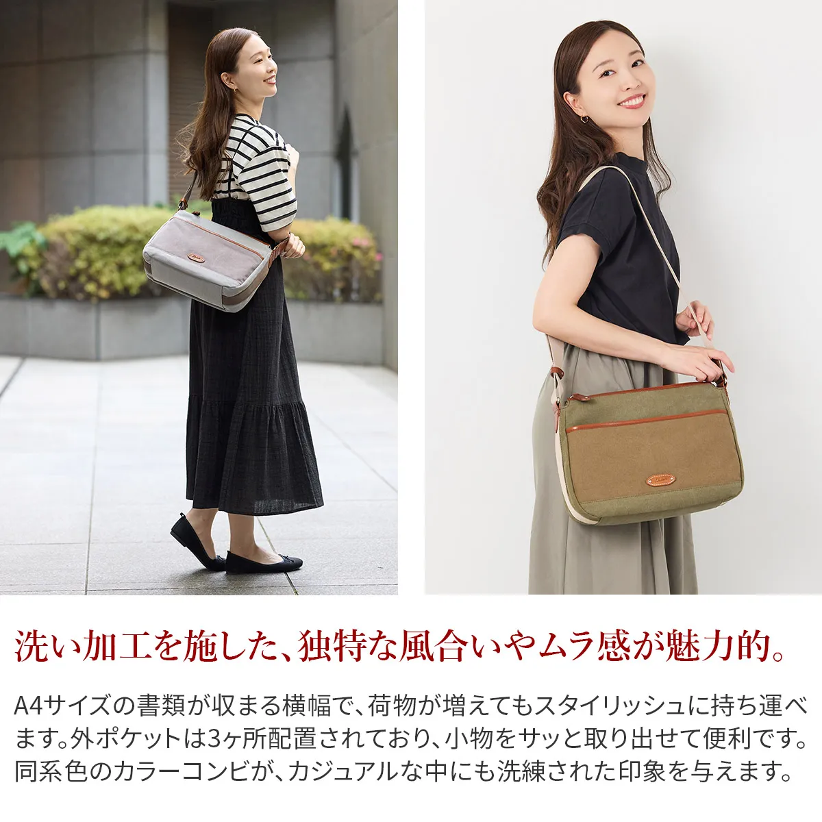 普段使いから旅のお供まで幅広く活躍する帆布バッグシリーズ。洗いをかけた帆布を使用しており、柔らかさとヴィンテージ感がポイント。付属にイタリアンレザーを合わせロゴ部分は国産ヌメ革をあしらった素材にもこだわったシリーズです。 ヴィンテージ感漂うショルダーバッグ。シンプルながらもレザーロゴが目を惹く逸品です。洗い加工を施した帆布を使用しており、ところどころにレザーがあしらわれています。A4の書類が入るサイズ感で、マチもしっかり設けられているので、お出かけに必要な荷物を多く収納できます。