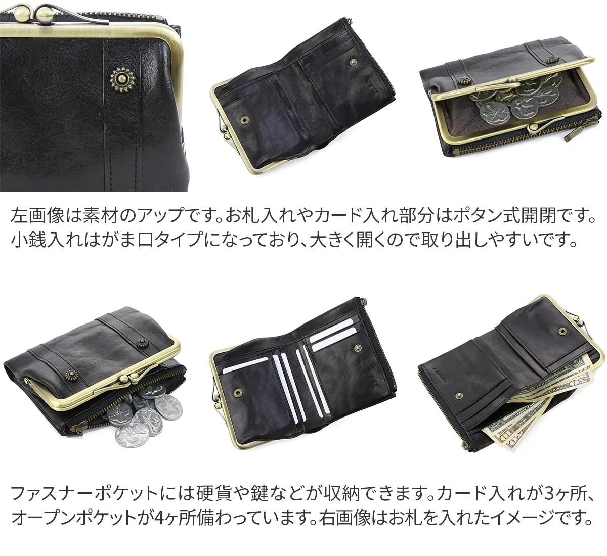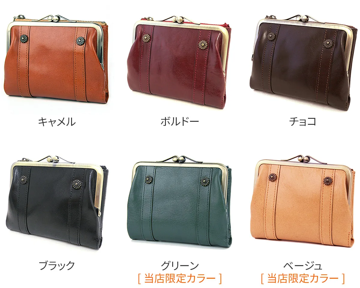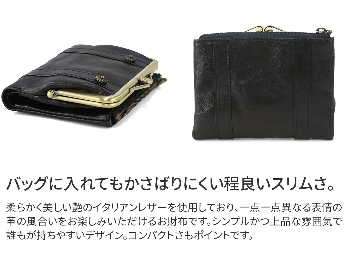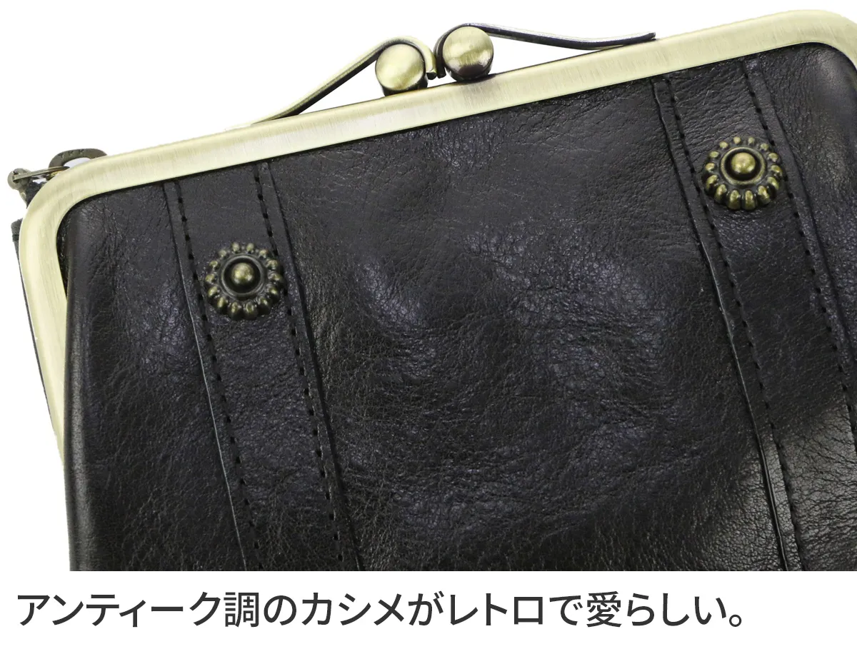 お花のカタチをしたカシメがデザインポイントのリードクラシックシリーズ。レトロ可愛くてクラシカルな雰囲気を醸し出しています。 光沢のあるイタリア製牛革を使用しており、素材感も人気の秘訣です◎可愛らしいフォルムから女性らしさが演出できるレトロなデザインです。大きく開くがま口の小銭入れがとても使いやすいのが良いですね♪