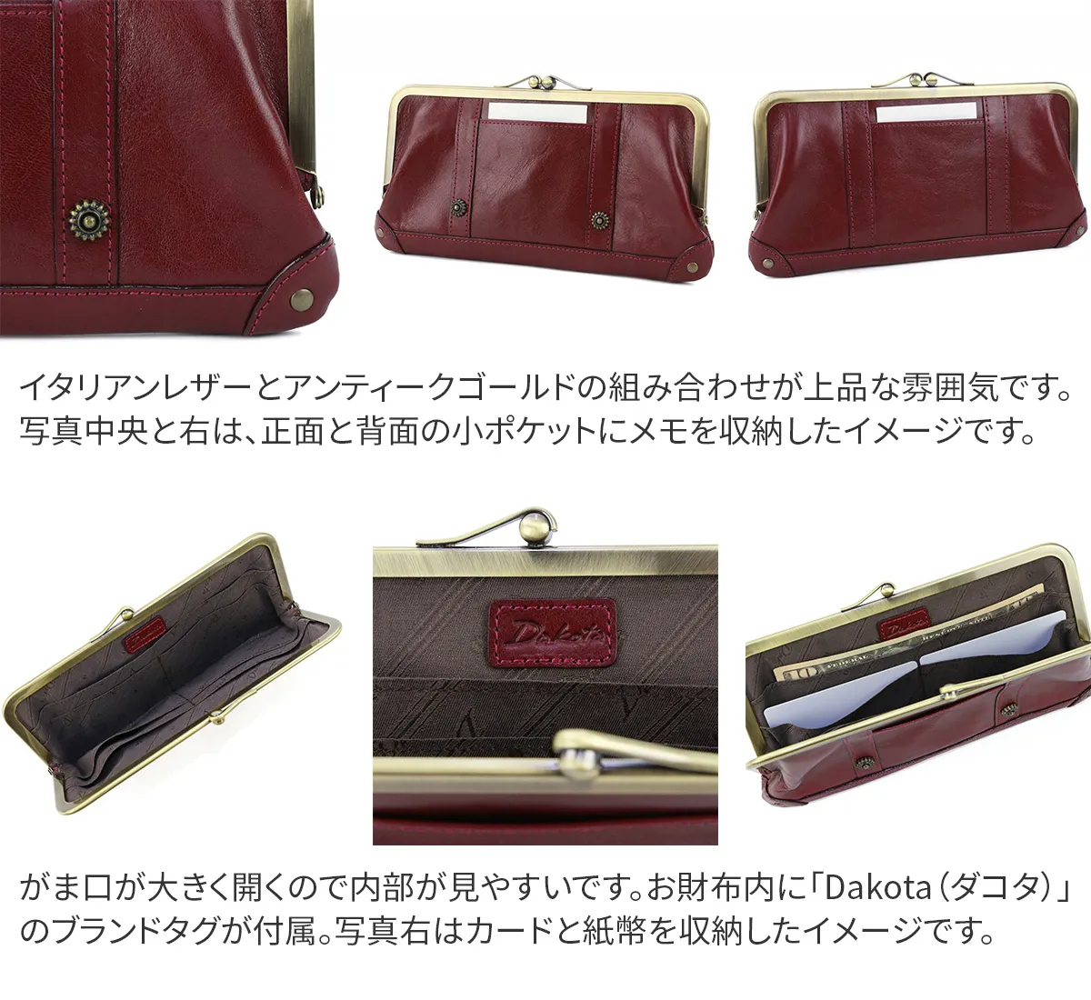 Dakota(ダコタ) リードクラシック2 がま口長財布 0037021 (0032002) クラシカルな"レトロ可愛い"デザインの長財布♪ アイディア次第で様々な使い方ができる作りです
