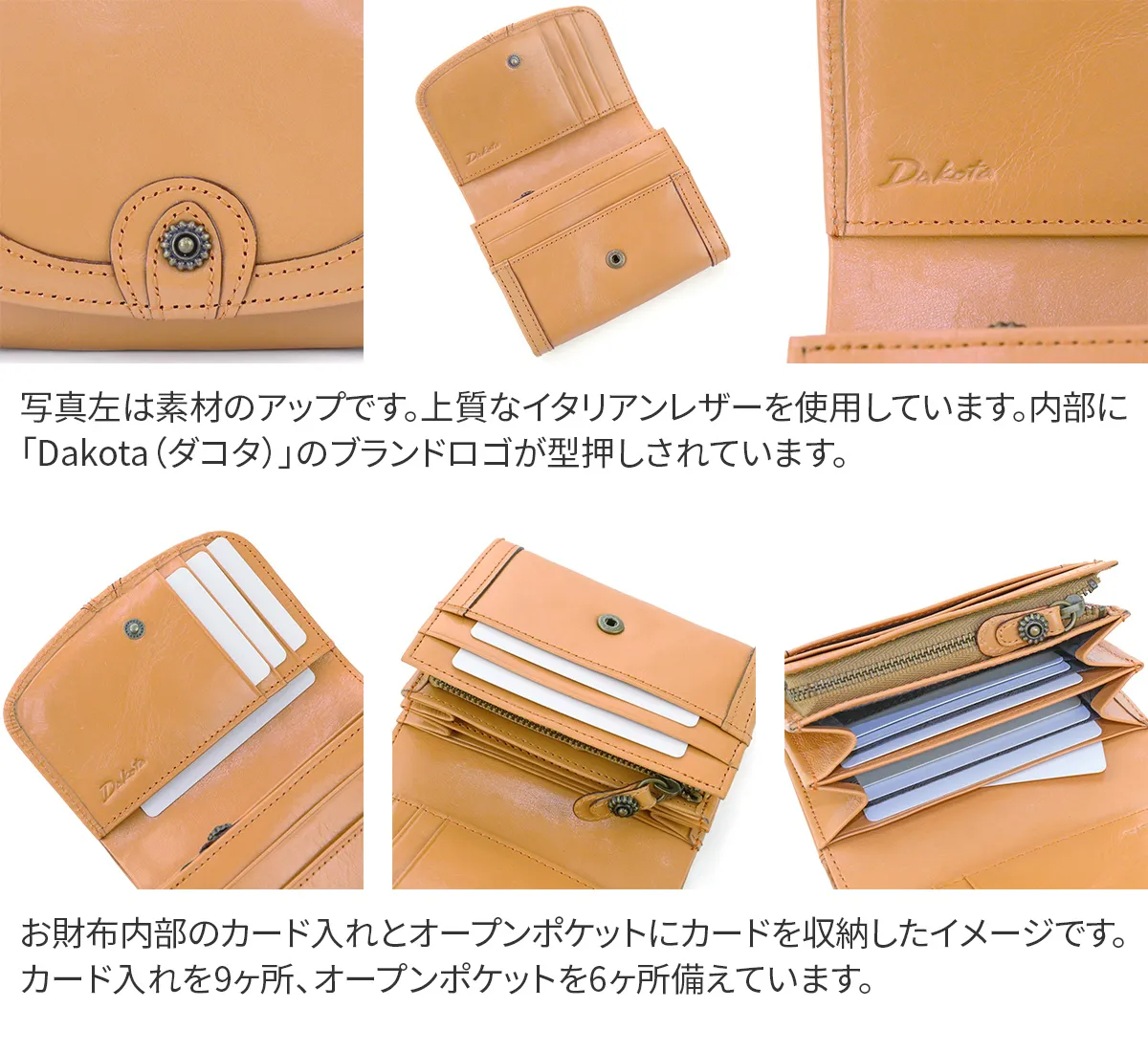 Dakota(ダコタ) リードクラシック2小銭入れ付き二つ折り財布 0037023(0032006) キッチリとしたデザインとイタリアンレザーが 特徴的な2つ折りウォレット♪