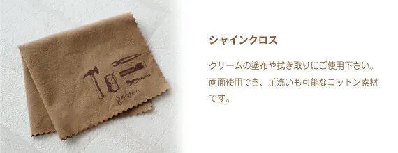 上記2点のクリームはスエードやヌバッグ等の起毛革、ヘビ、ワニその他の特殊な革や布には使用できません。