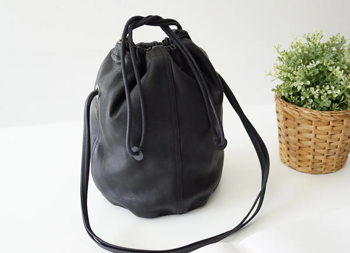 少しのシミやキズはあるけれど、良質な素材をお求めやすく。「良い素材でできたアイテムの魅力」を知って頂きたい思いで企画。ランダムなミやキズも天然素材ならではの魅力とgentenでは、考えています。 高級なカーフ素材で仕上げた巾着袋。この素材の魅力は、優雅な表情と軽さ、ハリやコシのある風合い。使い続けてもくたびれず適度なハリが残るのは、手間暇をかけたピット鞣しによる確かな革の証。simple is the best ちょっとしたお出かけや、バッグインバッグにもかさばらず重宝します。使うほどに増す地艶、繊維がほぐれ描く、美しいドレープをお楽しみください。 〈素材の特性・メリット〉 ピット鞣しのカーフ(牛革)素材を使用。シミやキズが入るのも天然素材ならではの魅力。革の表面は、汚れが付きにくい加工を施してあります。 後から付くシミを軽減するためにも、ご使用前にデリケートクリームを塗ってからご使用することをオススメします。 ※乾いた毛足の短いきめの細かい布に米粒程度をよくなじませた後に、 目立たない部分からお試し頂き、必ずシミにならないことを目で確認ください。円を描くように全体にご使用ください。 円形の底マチがたっぷり収納を可能にした、容量によりフレキシブルに変化するフォルムが魅力のアイテムです。A5書類対応で、長財布も縦収納できる実用性の良いサイズ感。特徴的な二重ショルダーベルトは、両方掛けでも片方掛けでもこなれ感たっぷり。こっくりとしたカラーバリエーションはスタイルに合わせやすく、程よく存在感を放ちます。