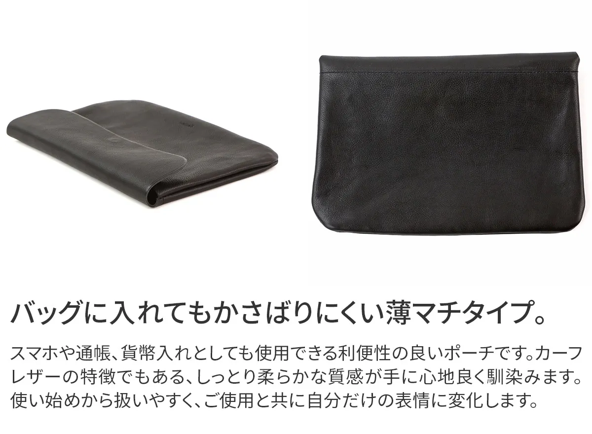 ナチュラルなレザーの素材感が魅力的、 小物をひとまとめにできるポーチです。
