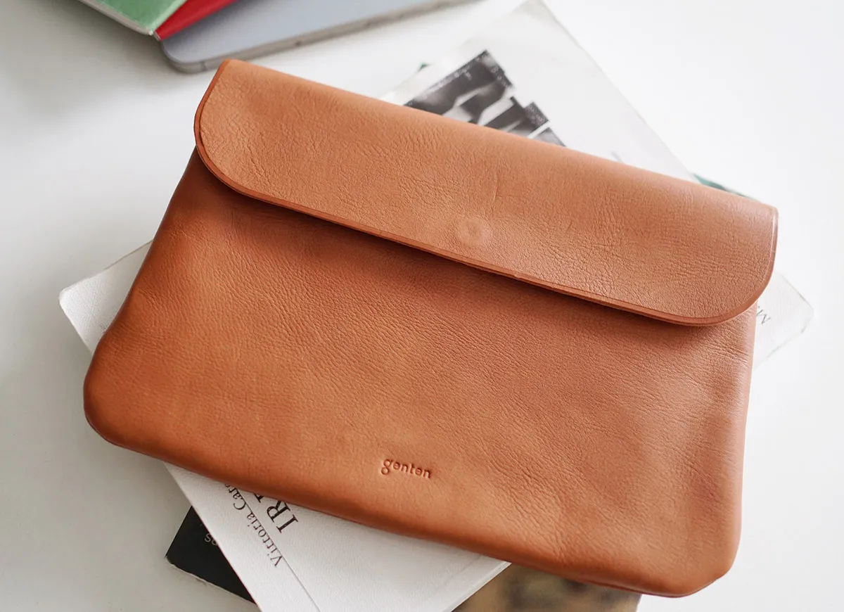少しのシミやキズはあるけれど、良質な素材をお求めやすく。「良い素材でできたアイテムの魅力」を知って頂きたい思いで企画。ランダムなシワやキズも天然素材ならではの魅力とgentenでは、考えています。高級なカーフ素材で仕上げた巾着袋。この素材の魅力は、優雅な表情と軽さ、ハリやコシのある風合い。使い続けてもくたびれず適度なハリが残るのは、手間暇をかけたピット鞣しによる確かな革の証simple is the best ちょっとしたお出かけや、バッグインバッグにもかさばらず重宝します。使うほどに増す地艶、繊維がほぐれ描く、美しいドレープをお楽しみください。 約幅20×高13.5cmとゆとりのあるサイズ感。ホック付きのかぶせを開けると、中央のファスナー付きポケットが仕切りとなり3室に分かれたつくり。通帳やおくすり手帳、母子手帳などのほか、マスクや絆創膏、ペンや付箋、メモ帳など。バッグの中の小さな荷物を整理しながら収納するのに役立ちます。