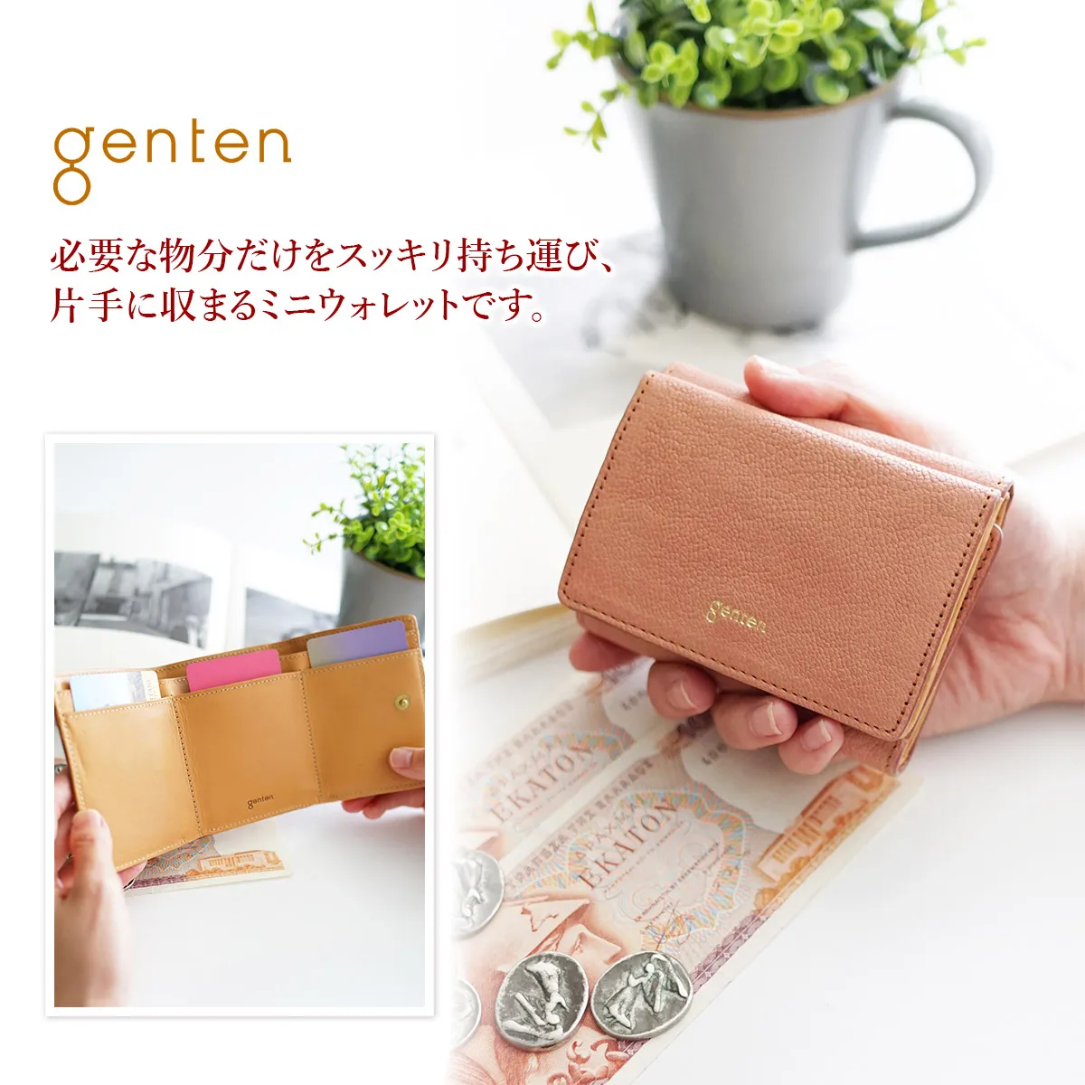 genten(ゲンテン) Fresco(フレスコ) 小銭入れ付き三つ折り財布 44318