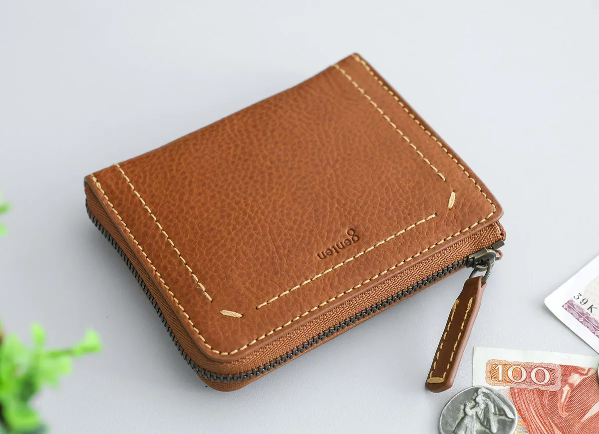 イタリア産ショルダーならではのオイルアップの味の良さがありながら、比較的ドライでなおかつ軽さ、ソフトさもある。そんな理想を描き、半年の歳月をかけて開発したgentenオリジナルレザーを採用。ステッチワークを施したジェンダーレスなデザインです。 〈素材の特性・メリット〉 鞣しの種類:植物タンニン鞣し(多脂革)脂の比重も軽く匂いも少ないです。ダブルショルダー革のボリューム感がありながらソフトかつ軽量です。素あげに近い銀面の仕上げで、ありのままの革のキズ、ムラも含め“本革らしさ”を存分に楽しめます。浅い爪傷やチョークマークには、genten推奨クリーム類を柔らかな布当に少量とってやさしく拭くと、ある程度軽減されます。 革の本場イタリア・トスカーナ州にある老舗タンナー「Italpel」に特別オーダーした、こだわりのソフトシュリンクレザーを使用しています。飽きのこないミニマルなデザインと、スムーズに中身へアクセスできる機能性を兼ね備えた、日常に寄り添う上質なアイテムです。