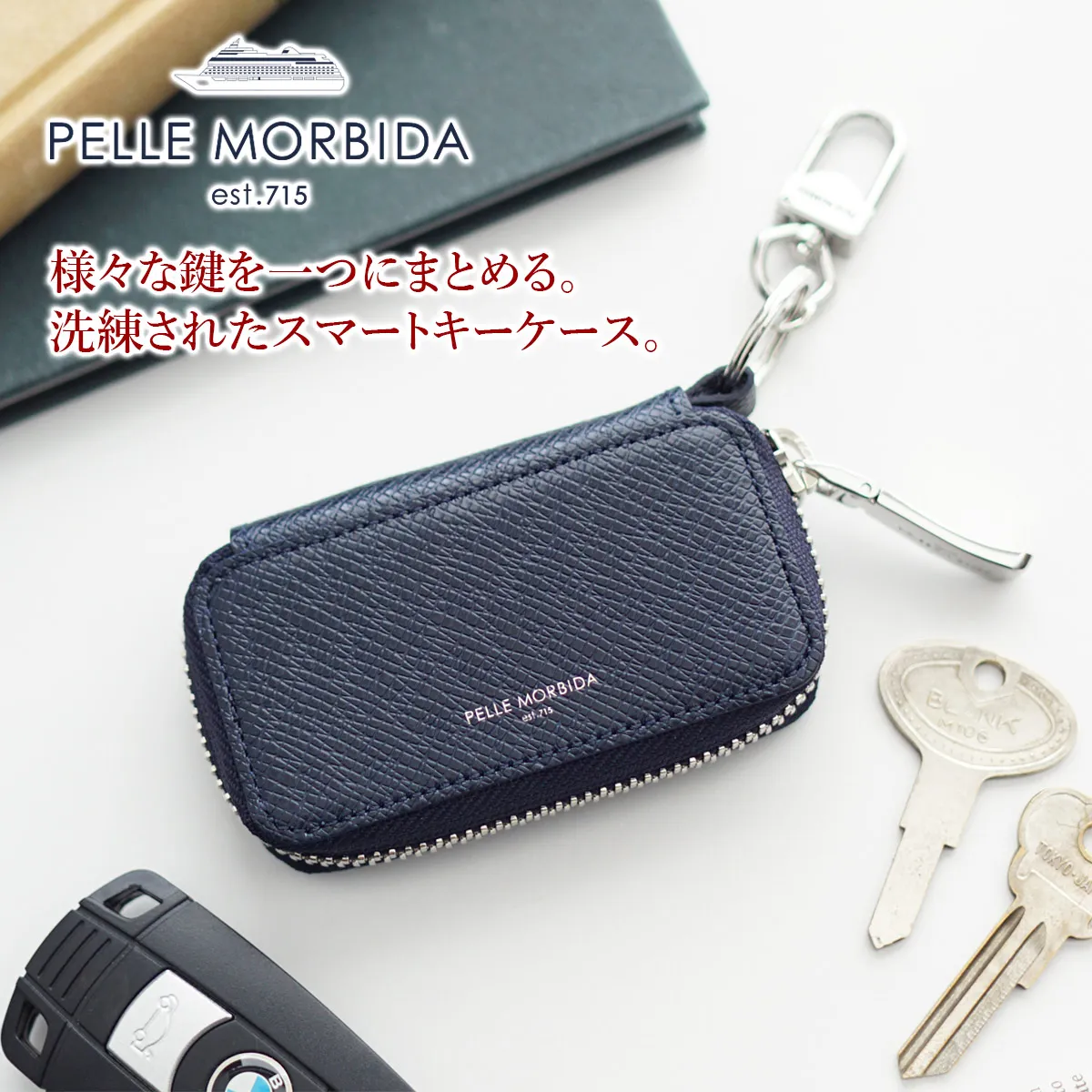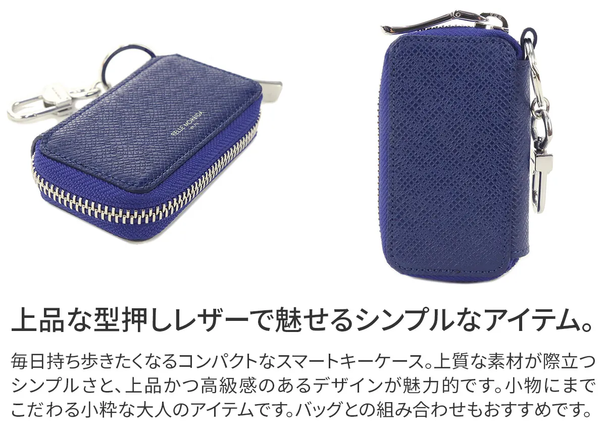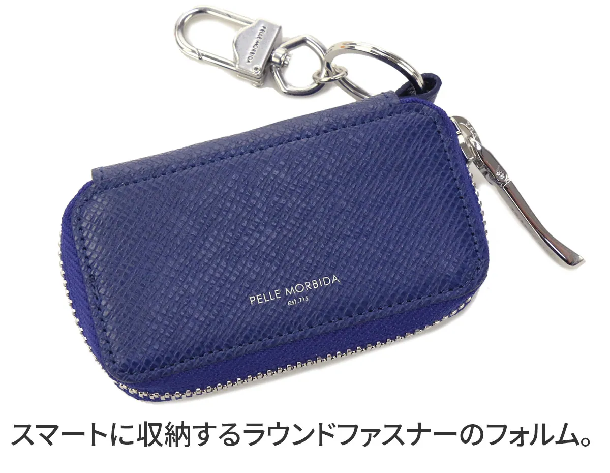 PELLE MORBIDA(ペッレ モルビダ) Barca バルカ エンボスレザー (オーヴァーロード) ラウンドファスナー スマートキーケース PMO-BA327 型押しレザーを使用した、 コンパクトなスマートキーケース。