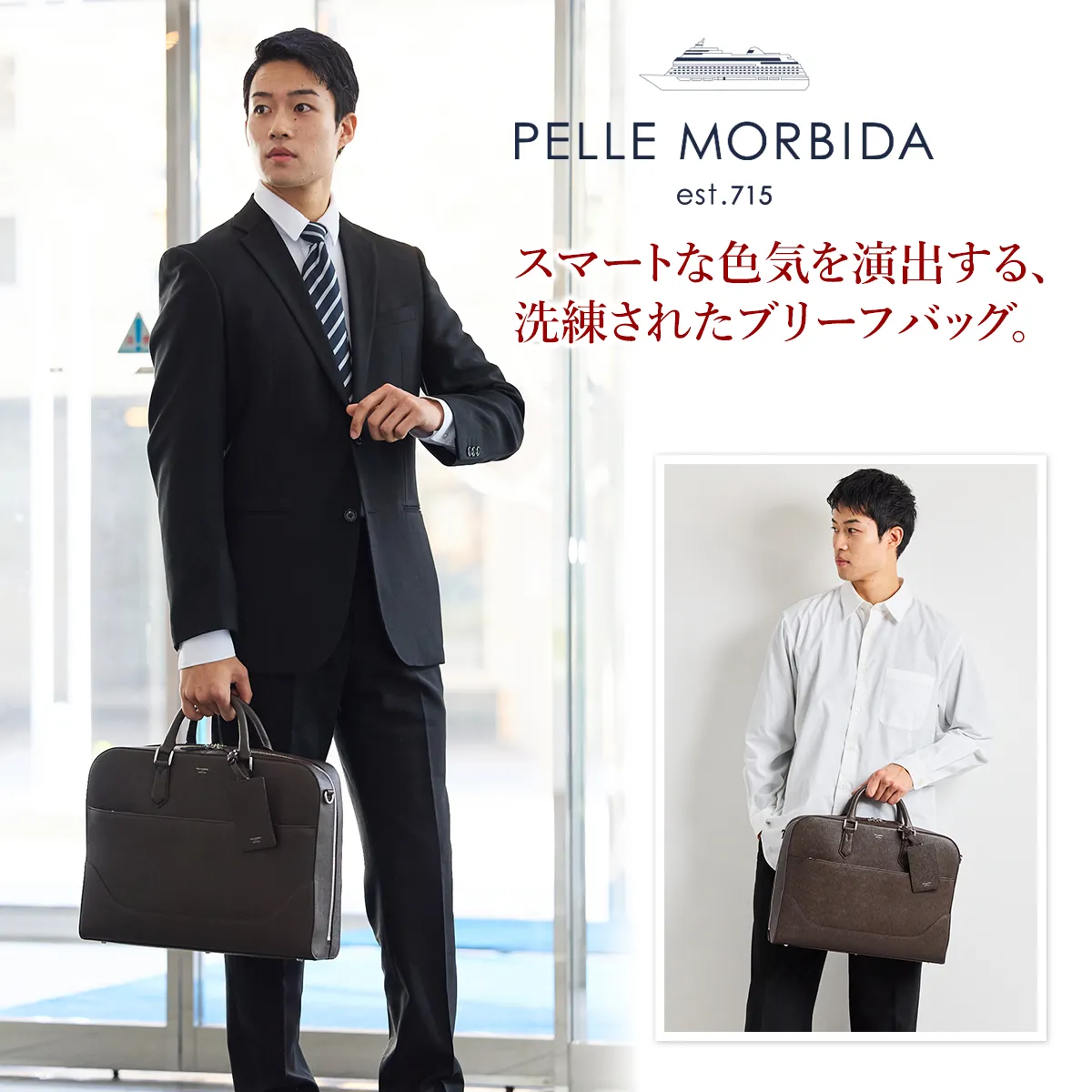 PELLE MORBIDA(ペッレ モルビダ) Capitano (キャピターノ) エンボスレザー B4ブリーフケース 1室タイプ(ショルダーベルト付属) PMO-CA013A 優雅な大人の品格が漂う、スタイリッシュなブリーフバッグ。