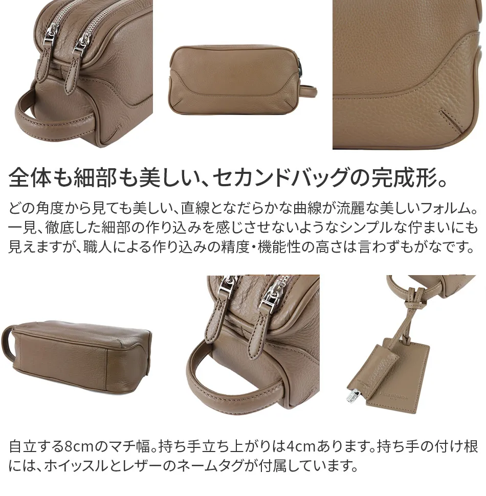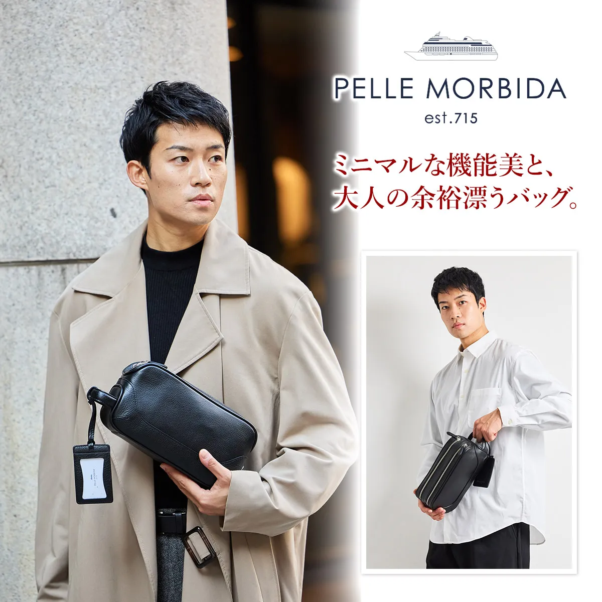 休日などちょっとしたお出かけに持っていけるバッグには様々なスタイルがあるもの。このサードバッグは、持ち運びに便利なハンドルが付いており、車での移動やちょっとした買い物などのあらゆるシーンに対応可能。内装も2室に分けられているので細々したものをスッキリ整理収納できるので、休日のちょっとした外出にもぴったりです。 ペッレ モルビダの代名詞でもある柔らかな風合いのシュリンクレザー。 革漉きなど、幾度も試作を重ね、シボ立ちを保ちつつ軽量な革を開発。 均一で綺麗なシボが優美な風合いを醸し出します。 柔らかさを表現しつつも、しっかりとしているため長く使えます。