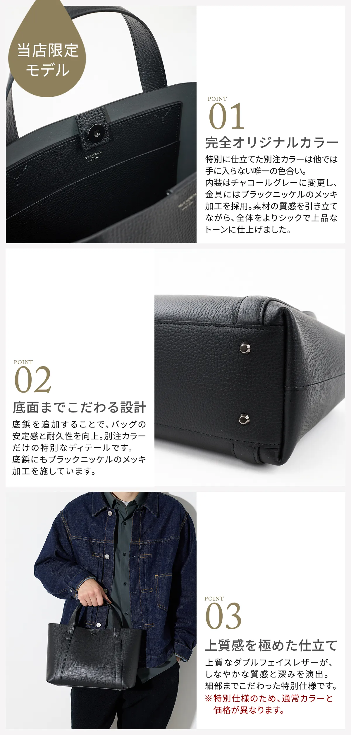 柔らかな風合いのダブルフェイスレザーを使用したミニトートバッグです。内装がバイカラーになっており、オールレザーながらも軽やかな印象です。発色の良い鮮やかなカラーリングで、ユニセックスでお使いいただけます。 Tela Marina(テーラマリーナ)シリーズは、そのころのLibornoの港にも碇泊していたであろう船舶の帆の生地をイメージしたファブリックで仕上げた軽快さとトラディショナルな上品さを表現したコレクション。背筋を伸ばして歩きたくなるアイテムです。 コンパクトながらB5サイズまでは収納できる大きさ、開口部もマグネットボタン式で間口は広く開きお財布や携帯電話など使用頻度の多いものは取り出しやすい仕様になっております。
