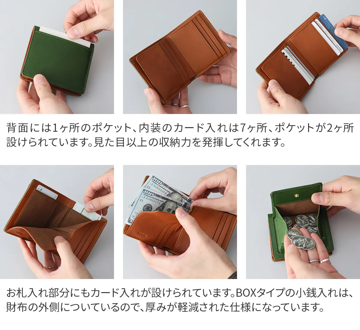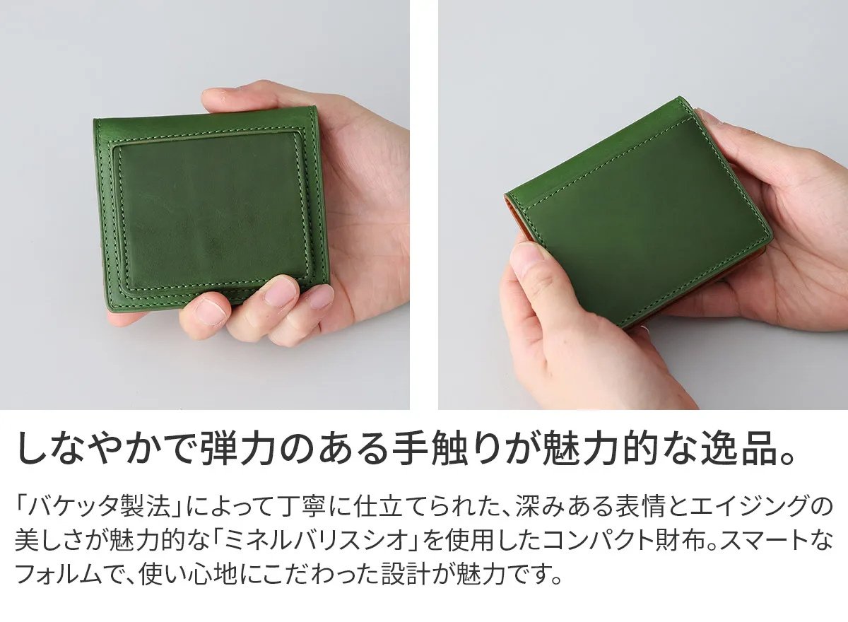 上質な艶と透明感をもつイタリア・フィレンツェ産の「ミネルバリスシオ」。 その深みある表情とエイジングの美しさは、1000年以上の伝統製法「バケッタ製法」によって丁寧に仕立てられた革ならではの魅力です。 表革には、そのミネルバリスシオを贅沢に使用。 つるりと滑らかな表面は上品で温かみがあり、手にするほどに艶を増し、持ち主だけの風合いへと育っていきます。 内装には、インド産フルグレインレザー「ナッパグロッシー」を採用。 しっとりと柔らかく、しなやかで弾力に富んだその手触りは、使い心地においても極上の体験をもたらします。 滑らかさと本物の質感を意味する「リスヴェロ」は、使うたびに輝きを深めていく、大人のためのレザーウォレットシリーズです。 一万円札がぴったりと入るコンパクトさが特徴のコンパクトウォレットで、スリットが入っていてお札の出し入れもとてもスムーズです。 また、内装のカードがあたって厚みが出ないように工夫を凝らしています。 小銭入れが外につけることで厚みを軽減していて、BOX型小銭入れなので中を見渡しやすく、使いやすさも兼ね備えた仕様です。