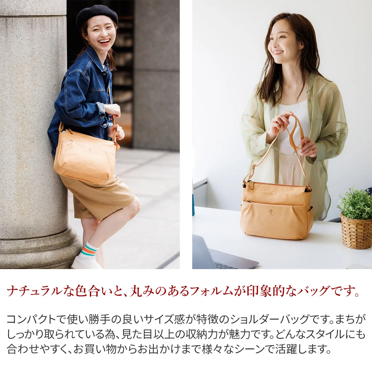 「自然を大切にしたい」はALBEROのフィロソフィー。 Naturaleは、それを象徴するシリーズ。 牛革ショルダー部を植物タンニンでなめし染色を施さず使う程に飴色に変化して光沢が増す素材。 コロンとした可愛らしい丸いフォルムに使いやすさを意識したデザインです。 マチがしっかり取られているので、コンパクトでありながら収納力も持ち合わせているどんなシーンでも活躍できるショルダーバックです。