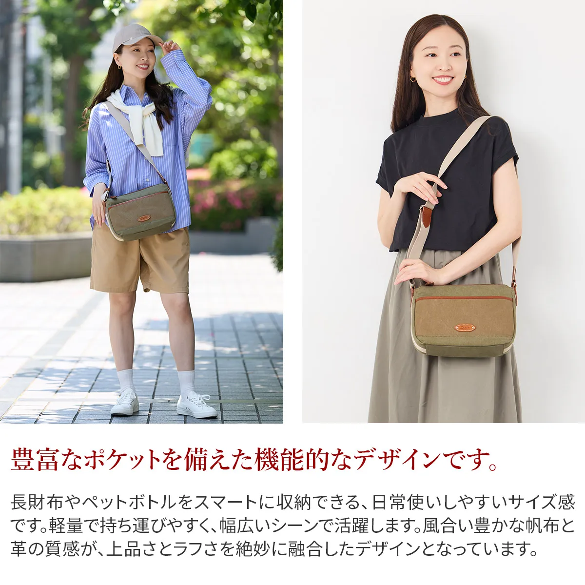 普段使いから旅のお供まで幅広く活躍する帆布バッグシリーズ。洗いをかけた帆布を使用しており、柔らかさとヴィンテージ感がポイント。付属にイタリアンレザーを合わせロゴ部分は国産ヌメ革をあしらった素材にもこだわったシリーズです。 ヴィンテージ感漂うショルダーバッグ。シンプルながらもレザーロゴが目を惹く逸品です。洗い加工を施した帆布を使用しており、ところどころにレザーがあしらわれています。マチもしっかり設けられているので、普段のお出かけにぴったりなアイテムです。