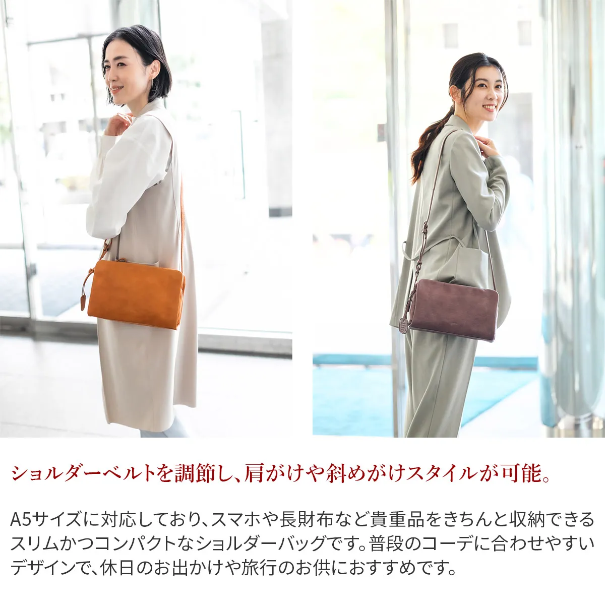 好評をいただいているゴートヌメをよりナチュラルな表情に仕上げた「ゴートベーシック」が登場です。 ゴートヌメは仕上げにウォッシュ加工をかけ、表面にバフ加工(焦がし)を入れることでヴィンテージ感を演出しておりましたが、 ゴートベーシックでは、製品後のバフ加工ではなく、革の段階でグレージングという仕上げ加工を加えています。 素上げの山羊革にグレージング加工を施す事で素材のそのものの持つ表情をより際立たせ、奥行き感のある仕上がりにしています。 身軽にお出かけしたい日にぴったり。カジュアルにも綺麗めコーデにもマッチするシンプルなデザインで、様々なシーンに対応します。 スリムかつコンパクトなサイズ感で、貴重品を入れて、ちょっとしたお出かけや休日デート、旅行のお供まで幅広く活躍します。