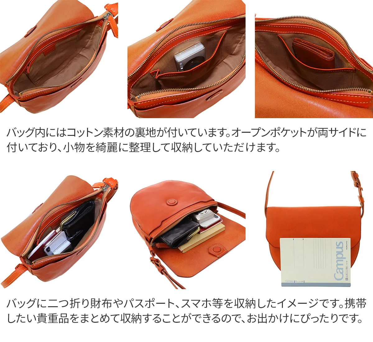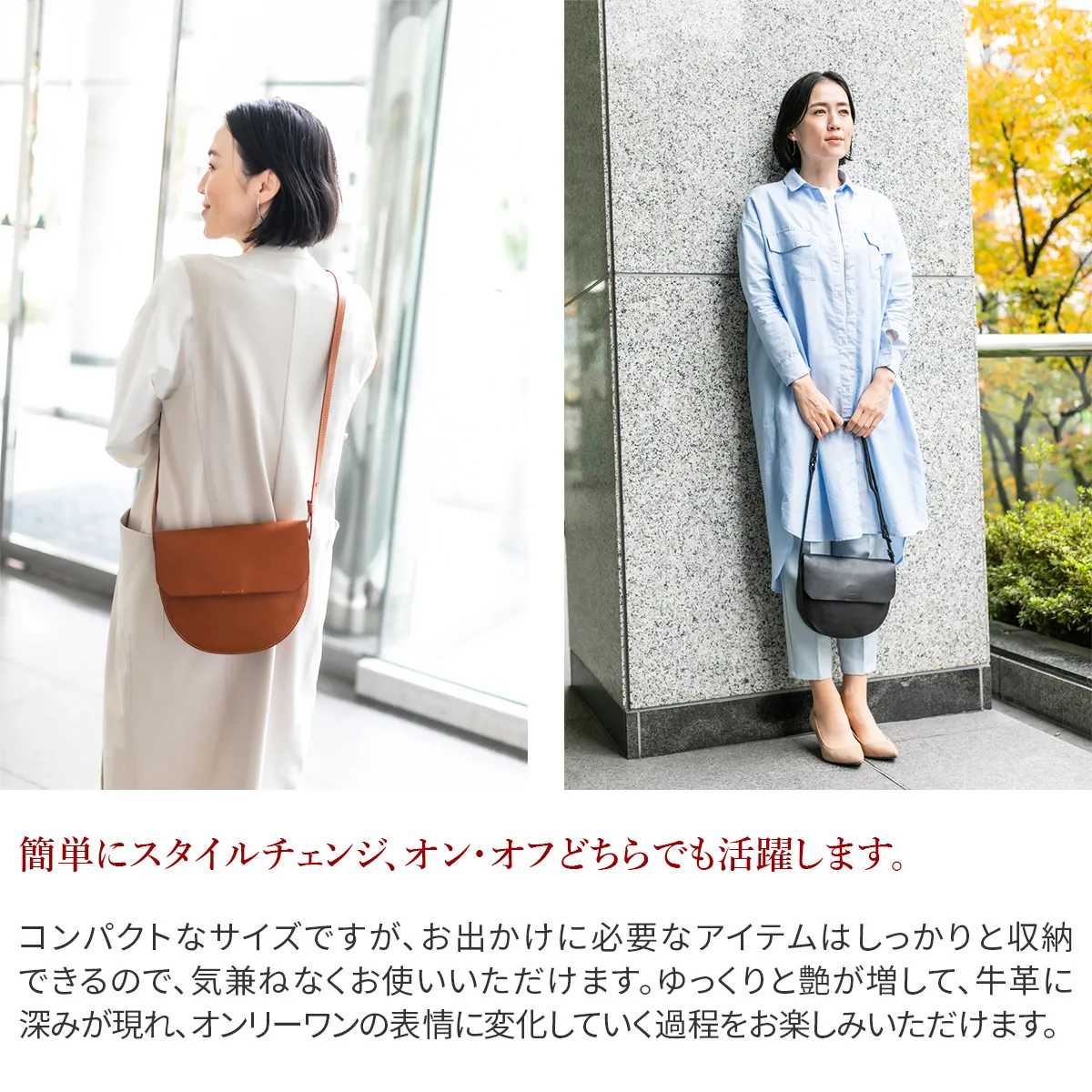知恵や工芸などを司る、古代ローマの美神"ミネルヴァ MINERVA"ミニマムな中に漂う知的な佇まいと、数々の手仕事に裏打ちされた確かな品格。 その存在感に穏やかさと豊かさを際立たせてくれる、優良質なヴァケッタ革の魅力。何かを足すのではなく、何も引くこともない、エターナルな思いを込めて造られたアイテムの数々は、 手に取るたびに至高の風格を垣間見せてくれます。貴方の傍らで、ともに静かに響きあえる・・・そんな関係を築けるバッグです。 <素材の特性・メリット> gentenお馴染みのヴァケッタ革、ミネルバボックス(minerva box)をふんだんに使用しました。 バッグ本体やポケットの仕様部分に、革一枚仕立ての構造を多くあしらい、切り目や革裏を、職人が一枚一枚丁寧に腑糊で磨きをかけました。 時間をかけて鞣されたタンニン革だからこそ楽しめる一枚革の魅力とエイジングの極みを存分にお楽しみください。 カジュアルにデイリーユースできるデザインが魅力的。貴重品をきちんと収納し、少ない荷物で軽やかにお出かけしたい日に最適。 ポケットにより小物を分けて収納することができます。ショルダーベルトの長さをを調節することで、肩がけや斜めがけスタイルでお持ちいただけます。ショッピングやデート、旅行のお供におすすめです。