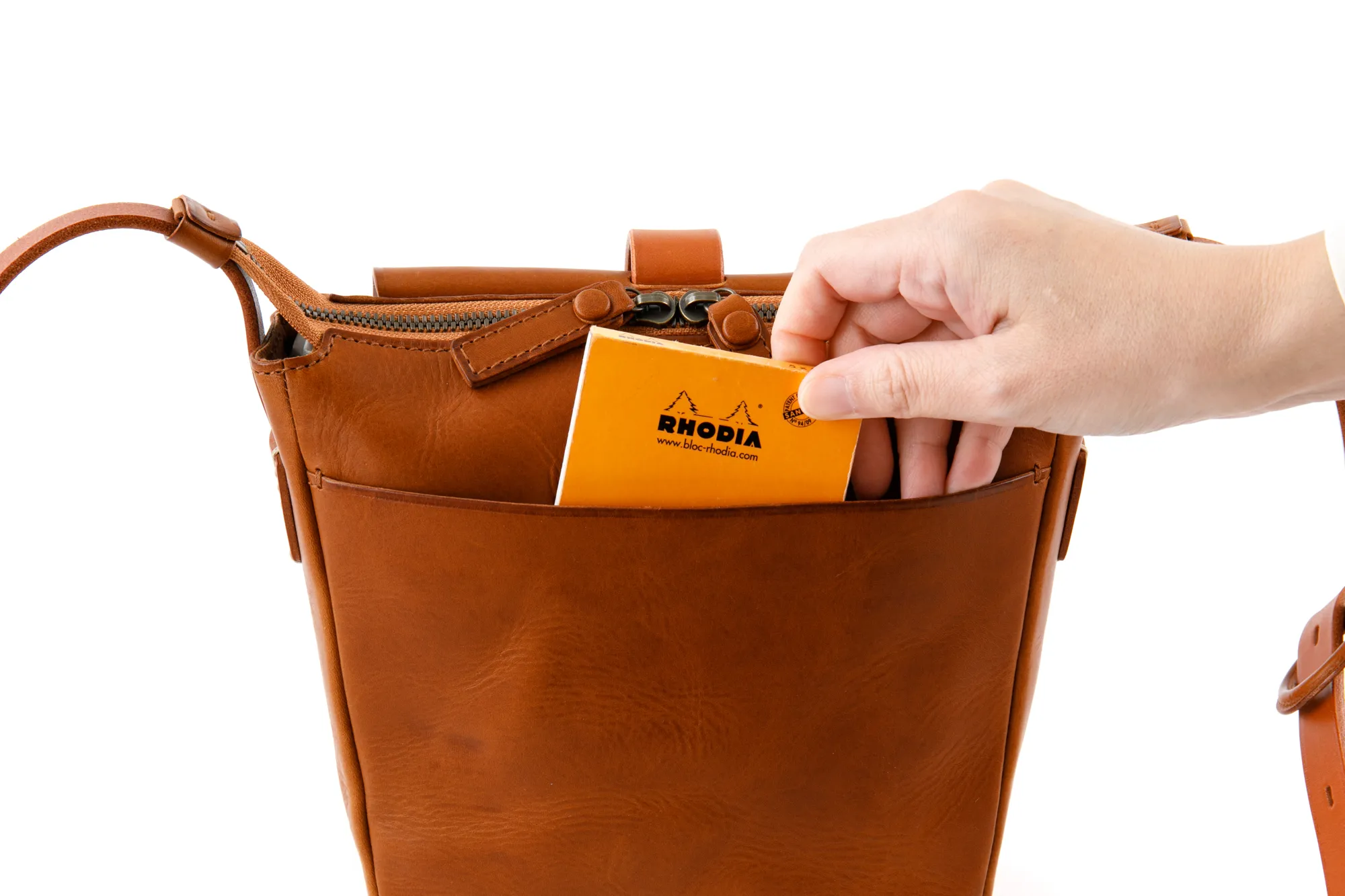 『バケッタ製法』のショルダーレザーで作られた本体を馬具に使用されるベルとディティールにインスパイアされた堅牢なサドルベルトで補強した武骨なシリーズ。使い始めは骨張りの強い革も使うたびにほぐれてゆき、いつしか使いぐせにあわせて、馴染んだフォルムに変化します。 バケッタ製法”と呼ばれる手鞣し・手染めで仕上げたミネルバリスシオの牛革。 表面は滑らかな手触りでハリのあるレザーを使用。使う程に艶と柔らかさが増し、 唯一無二の表情をお楽しみいただけます。