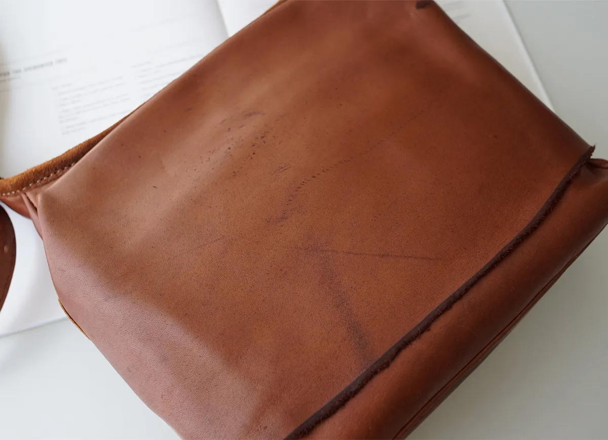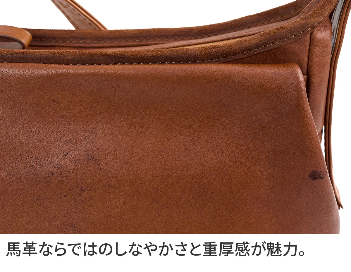「本革の景色」を表現したゲンテンならではの【馬革】のバッグシリーズ。(馬革は、他の動物と比べて行動範囲が広い故に、キズやシミが多いためにバッグとして使われることが少ない素材。また使う場合も表面を強くコーティングするため素材の特性が活きにくいのが特徴。)キズやシミの表面、質感など、一点一点の違いが馬革ならではの個性と捉えて仕上げられています。 使うほどタンニン鞣しならでの、艷やかで表情豊かな経年変化をしてゆきます。革の中と表面で染色の色を変え、キズやシミを「豊かな革の景色」として表現した、オリジナルで開発した軽量な馬革シリーズをお楽しみください。 ※各種クリーム、クリーナーは使用するとすぐに艶があがり濃色になります。 ・馬革ならではの耐久性のある厚みながらに軽量 ・他にない独特のもっちりとした質感 ・水や汗じみに強い革の仕上がり ・革の中と表面で、染色の色を変え、キズやシミを「豊かな革の景色」を表現したオリジナル素材 <素材の特性>かぶせ裏面(床面)は、素材の柔らかさを重視しているため、加工をしていません。それ故、多少の革のケバなどが衣服につく場合がありますので、ご了承ください。 また裏面は色落ちしますので、ご承知おきください。 ・本革(馬革)の質感をダイレクトに感じられる一枚革※フラップの表と裏に触れて使用するので、革の質感をお楽しみ頂けます。 ・質感を活かした、付け根をへり返した有機的なかぶせ。 ・革と同色の金具にしたシンプルなデザイン。