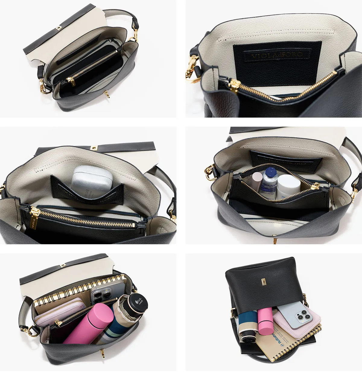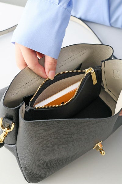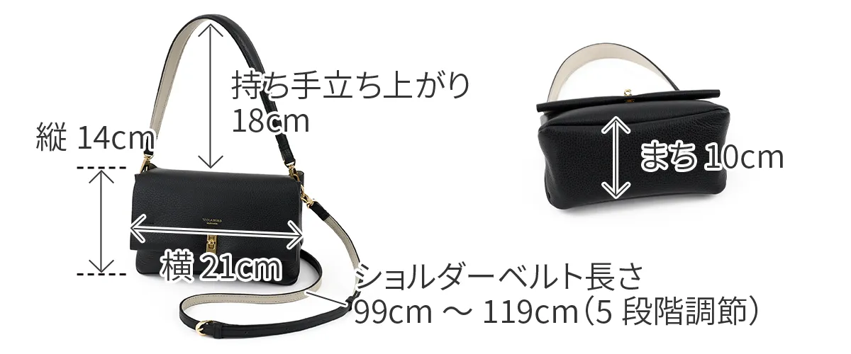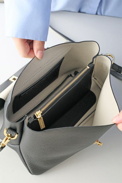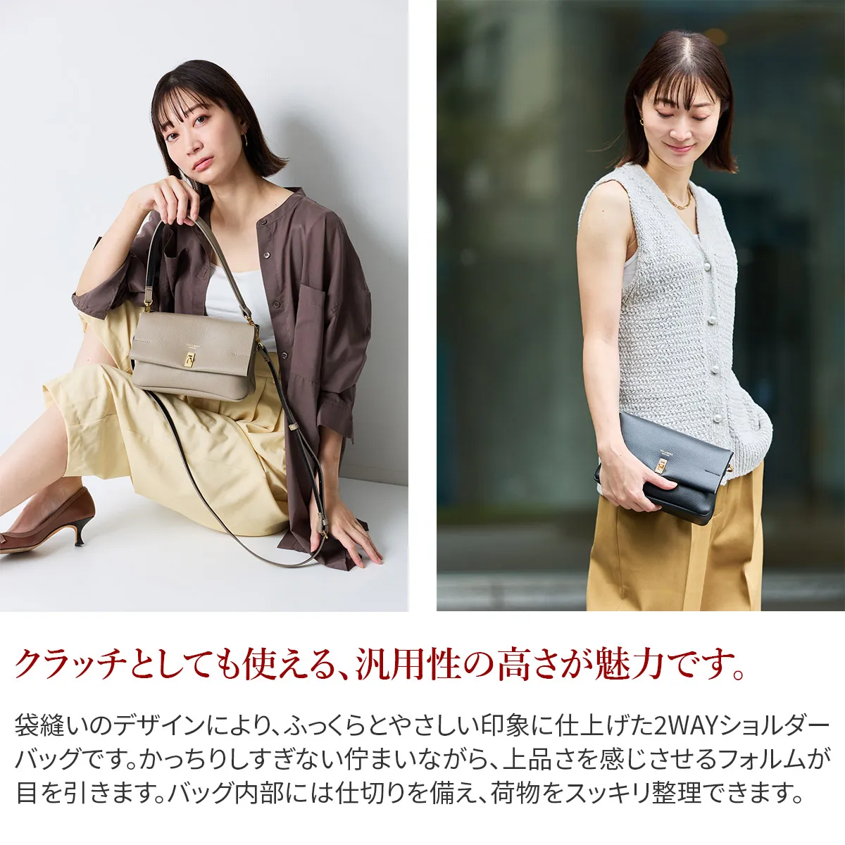 きちんとした場面にも映える、上品なシボ感と美しいフォルムが魅力のレザーバッグ。 ハンドルとショルダーベルトは付け替え可能で、シーンに応じた使い分けができる実用的なデザインです。 内部には仕切り付きの収納スペースを備え、コンパクトながらも整理整頓がしやすく、スマートに持ち運べるアイテムです。
