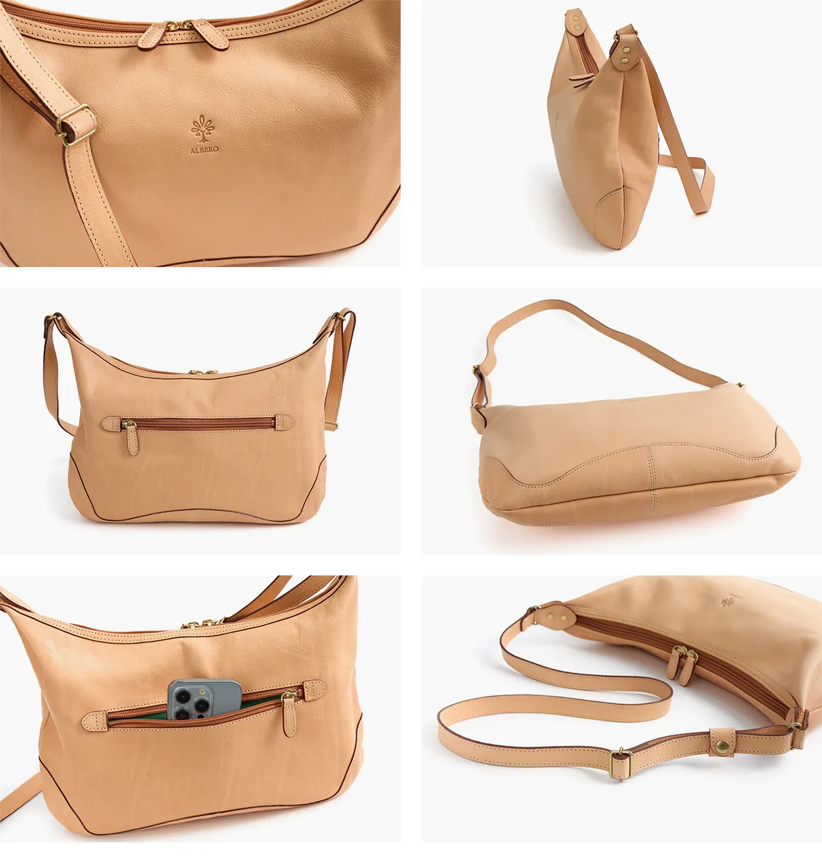 「自然を大切にしたい」はALBEROのフィロソフィー。 Naturaleは、それを象徴するシリーズ。 牛革ショルダー部を植物タンニンでなめし染色を施さず使う程に飴色に変化して光沢が増す素材。 ヌメ革のナチュラルな素材感でエイジングを楽しめるショルダーバッグ。美しいシルエットに革の切り替えやステッチワークが際立つデザインです。ショルダーベルトの長さを自由に調節できるので、斜め掛けや肩掛けなどコーデやシーンに合わせてご使用いただけます。