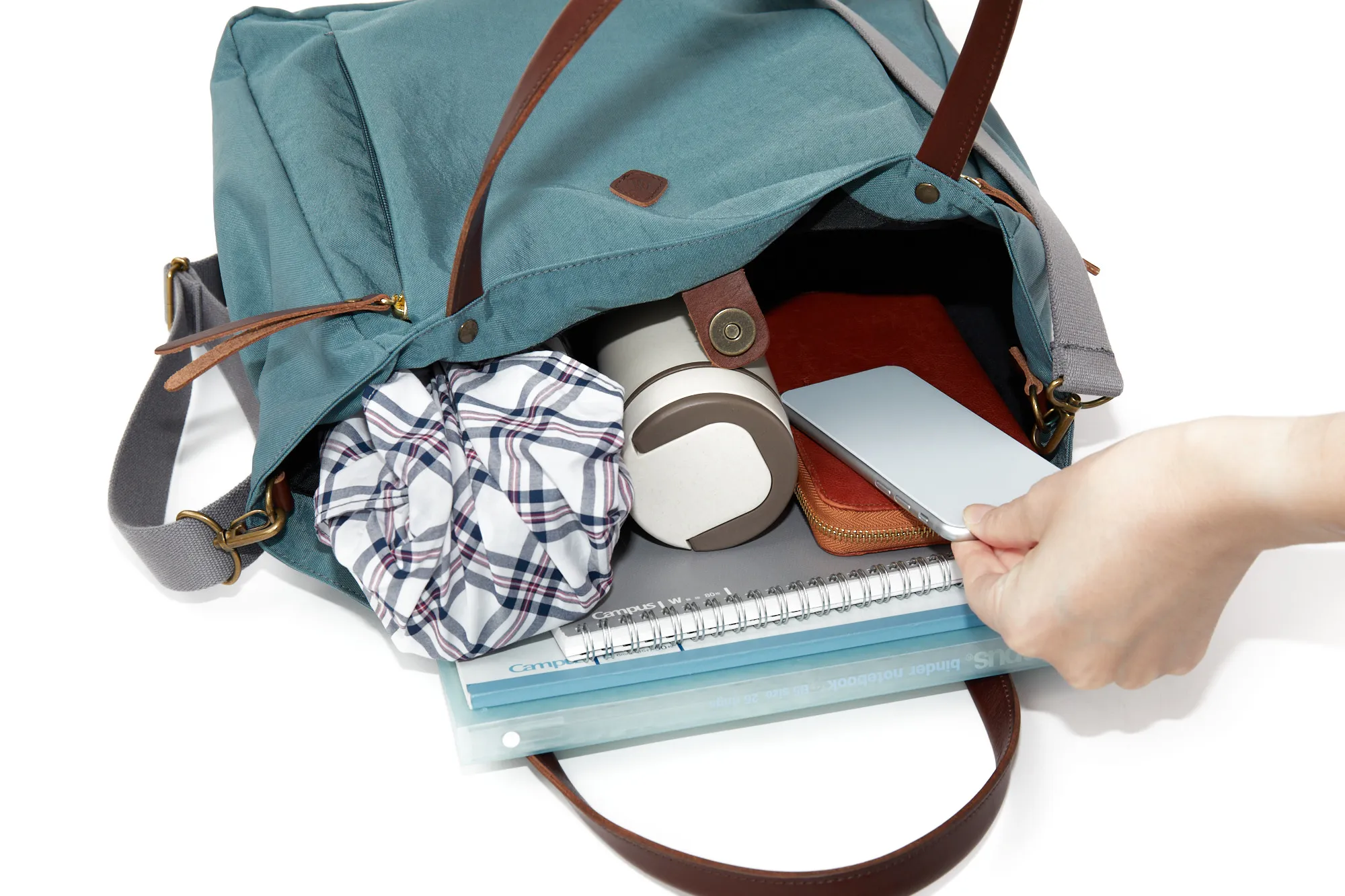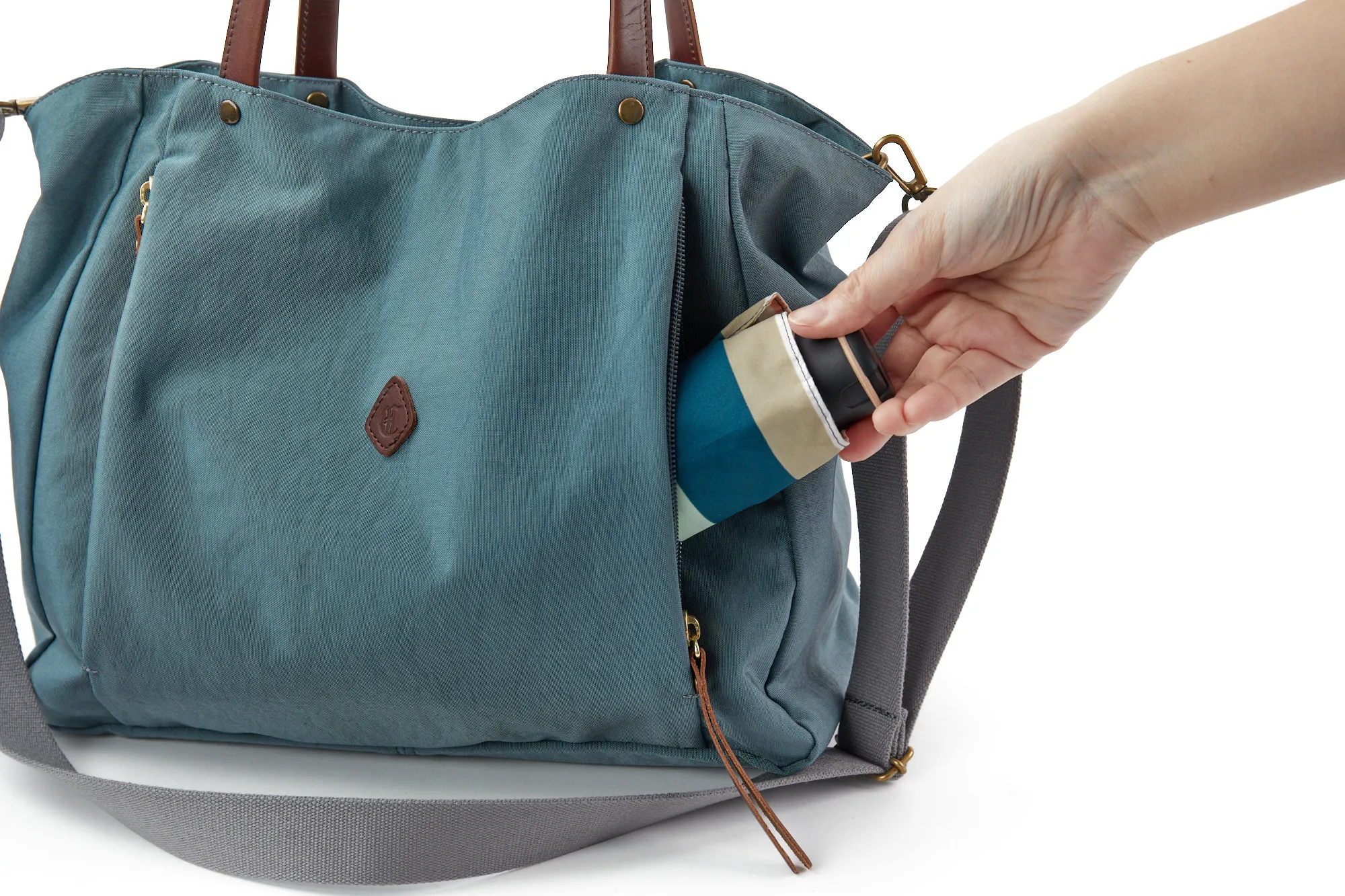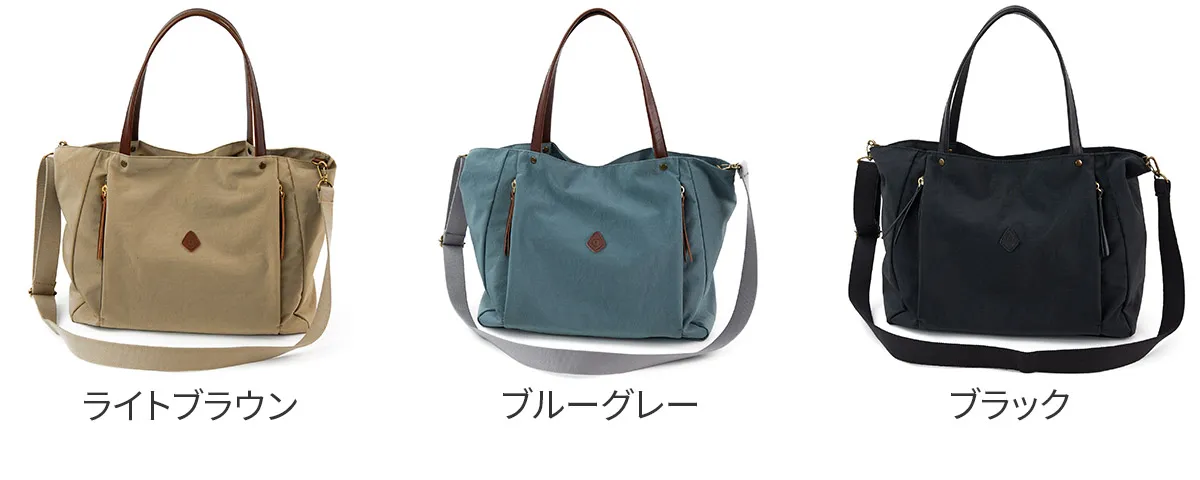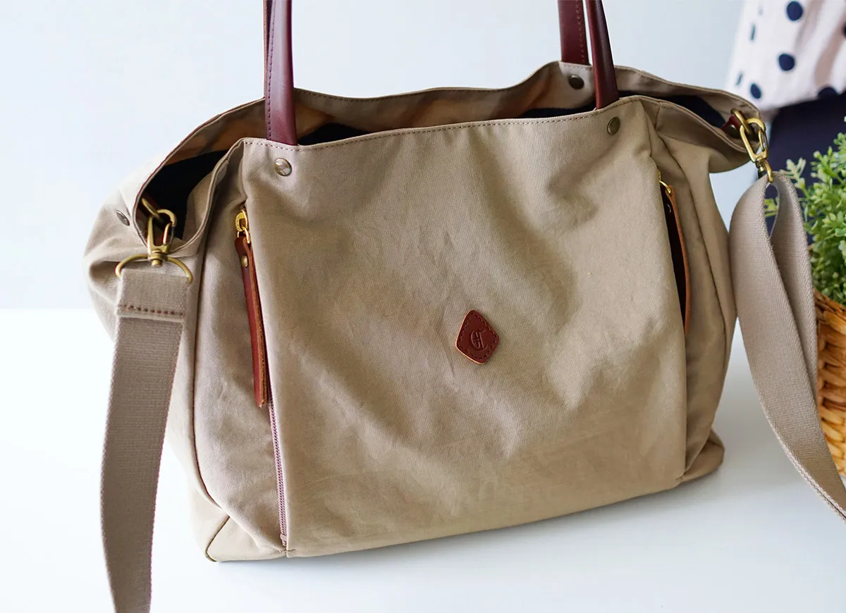 ほどよくシャリ感のあるナイロンと、牛革のコンビが印象的な2WAYトートバッグです。 前面に設けたファスナーポケットは左右どちらからでもアクセス可能なユニークなデザイン。 付属のショルダーベルトは67cm~118cmの間で調節可能で、スタイリングに合わせて持ち方を自在にアレンジできます。素材が布製なので、肩当たりが柔らかく長時間の使用でも疲れにくいのも嬉しいポイントです。