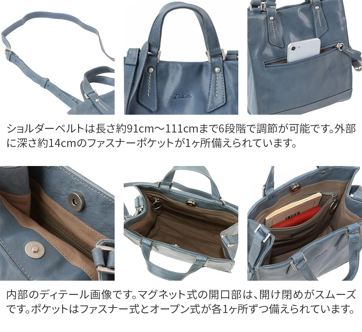 独特な革の表情が楽しめるデイリーユーズからビジネスシーンまでお勧めのバッファローレザーシリーズ。直線的な2WAYデザインが印象的。荷物の量に合わせてマチ幅が変化するので、かさばる事なくスマートにお持ちいただけます。 休日のお出かけにぴったりなサイズ感で、必要最低限の貴重品や携行品がスッキリ収まります。ショルダーベルトは長さ約91cm~111cmまで6段階調節ができ、その時の気分や身長に合わせて持ち方を変えていただけます。