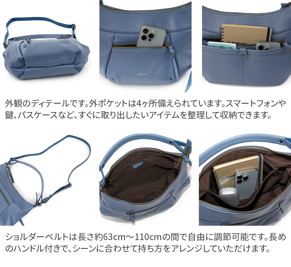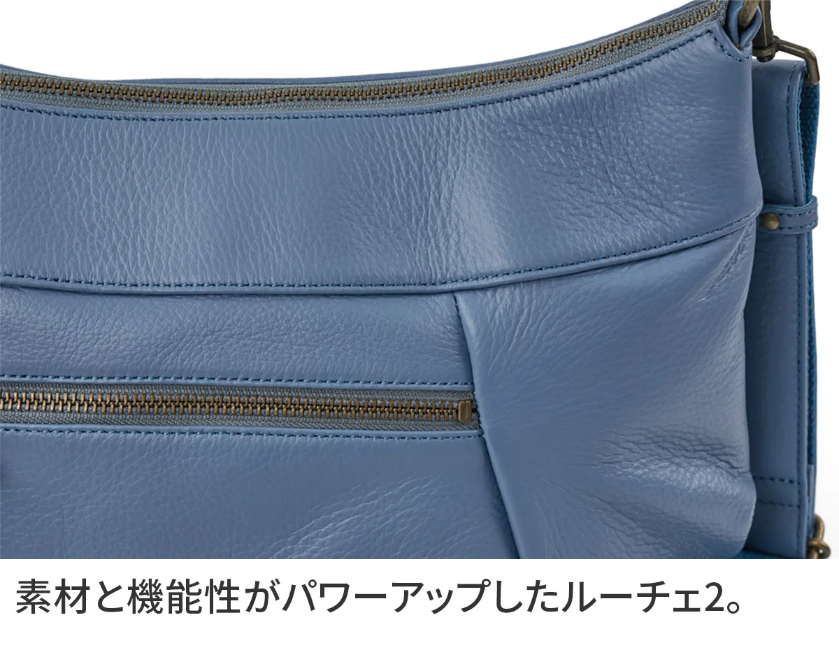ルーチェシリーズの革をリニューアル。色焼け・色飛びしにくく傷も付きにくい素材になりました。ポケットが多数配置されており、使いやすさはそのままに、より扱いやすくなっています。 タックを施したフォルムが、ふんわりとした立体感を演出。ショルダーベルトの取り付けが可能な2way仕様で、シーンに合わせて使い分けができます。洗練されたデザインと実用性を兼ね備えた、毎日使いたくなるアイテムです。