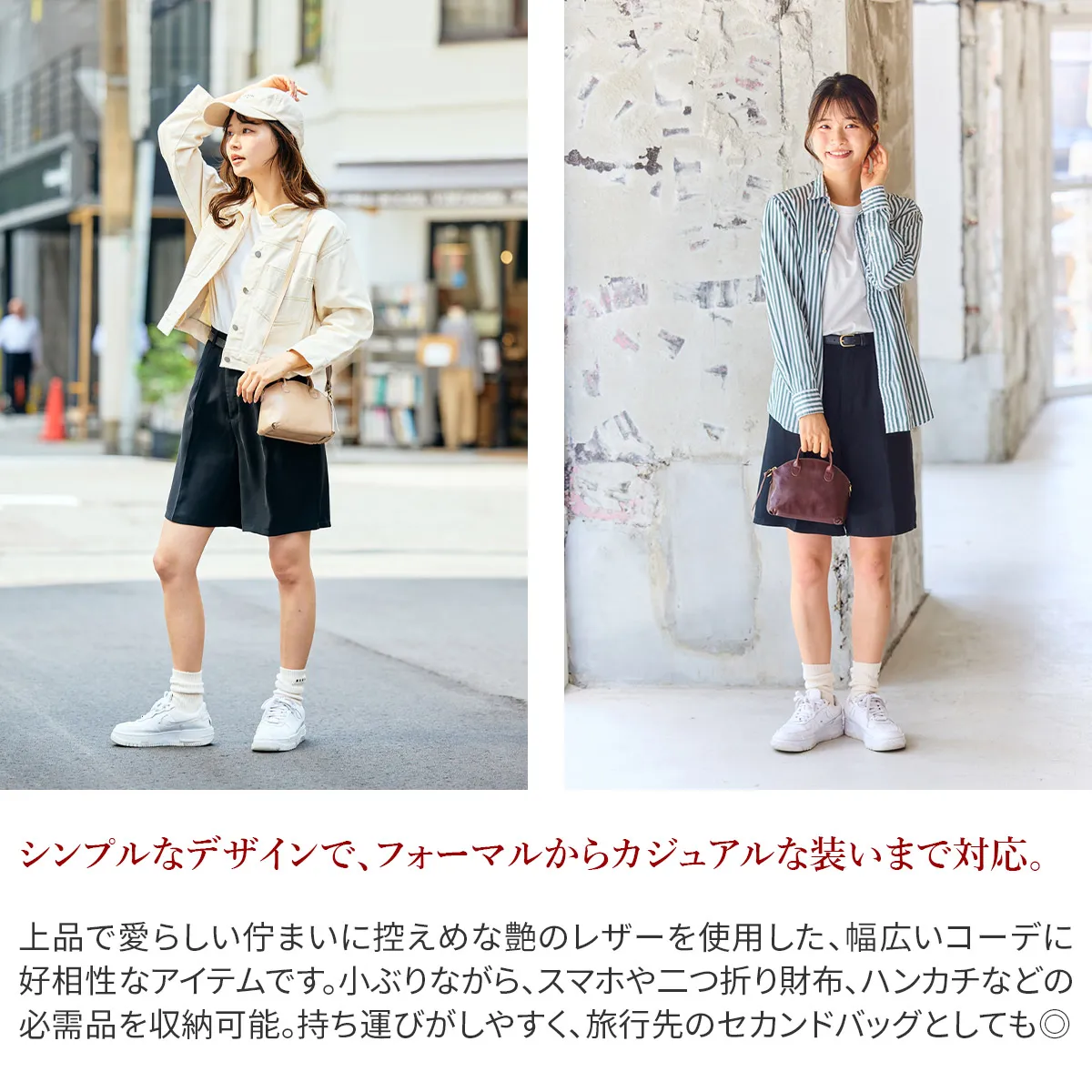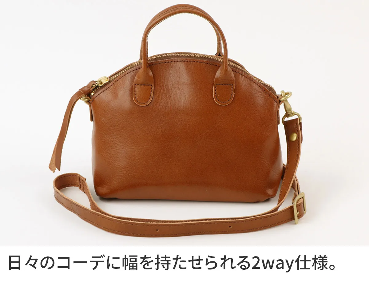 独特の製法で手染めのアンティーク加工をし、強さとしなやかさを兼ね備えています。 上品な艶があるレザーを使用したミニマルなボストンバッグです。必要最低限の貴重品やスマホを持ち歩くのに便利なサイジング。コロンとした愛らしいシルエットと華奢なハンドルが印象的で、持つだけでコーデのアクセントになるデザイン。一枚革で仕立てているのでオールレザーながら驚くほど軽く、長時間の使用でも疲れにくいのも嬉しいポイントです。ショルダーベルトは6段階で長さを変えられるので、使う方の身長や持ち方によってアレンジすることができます。