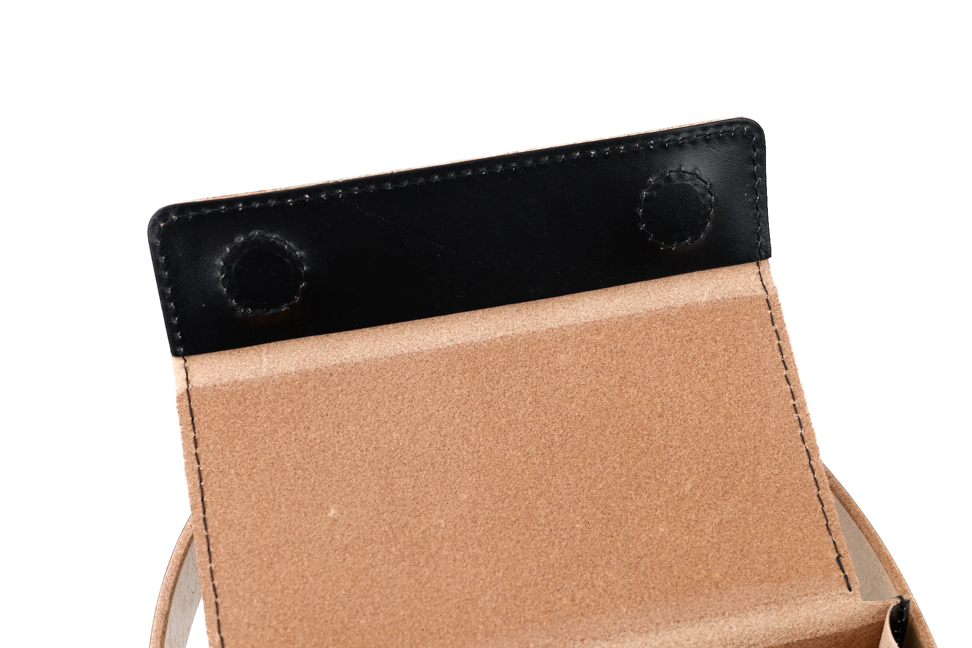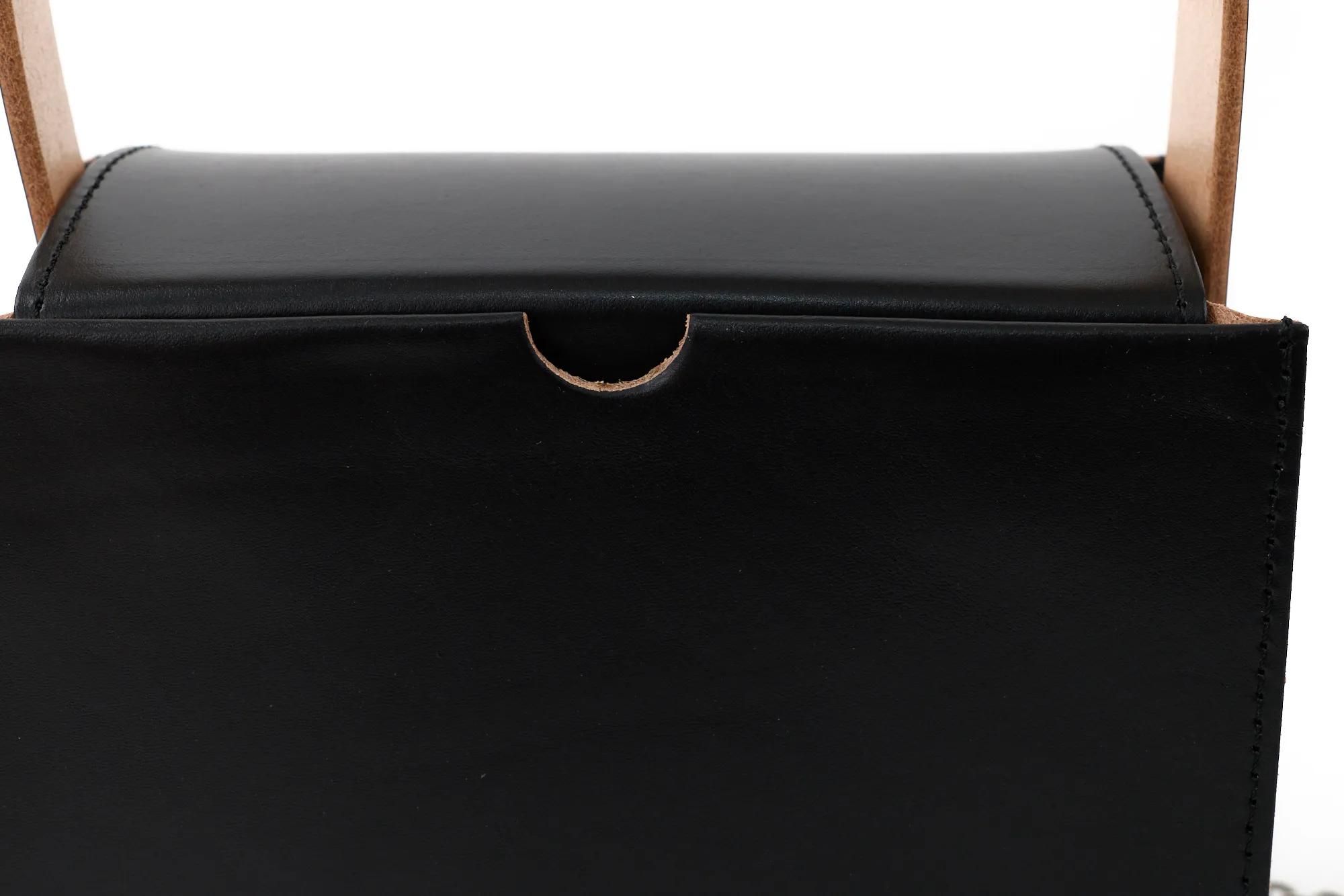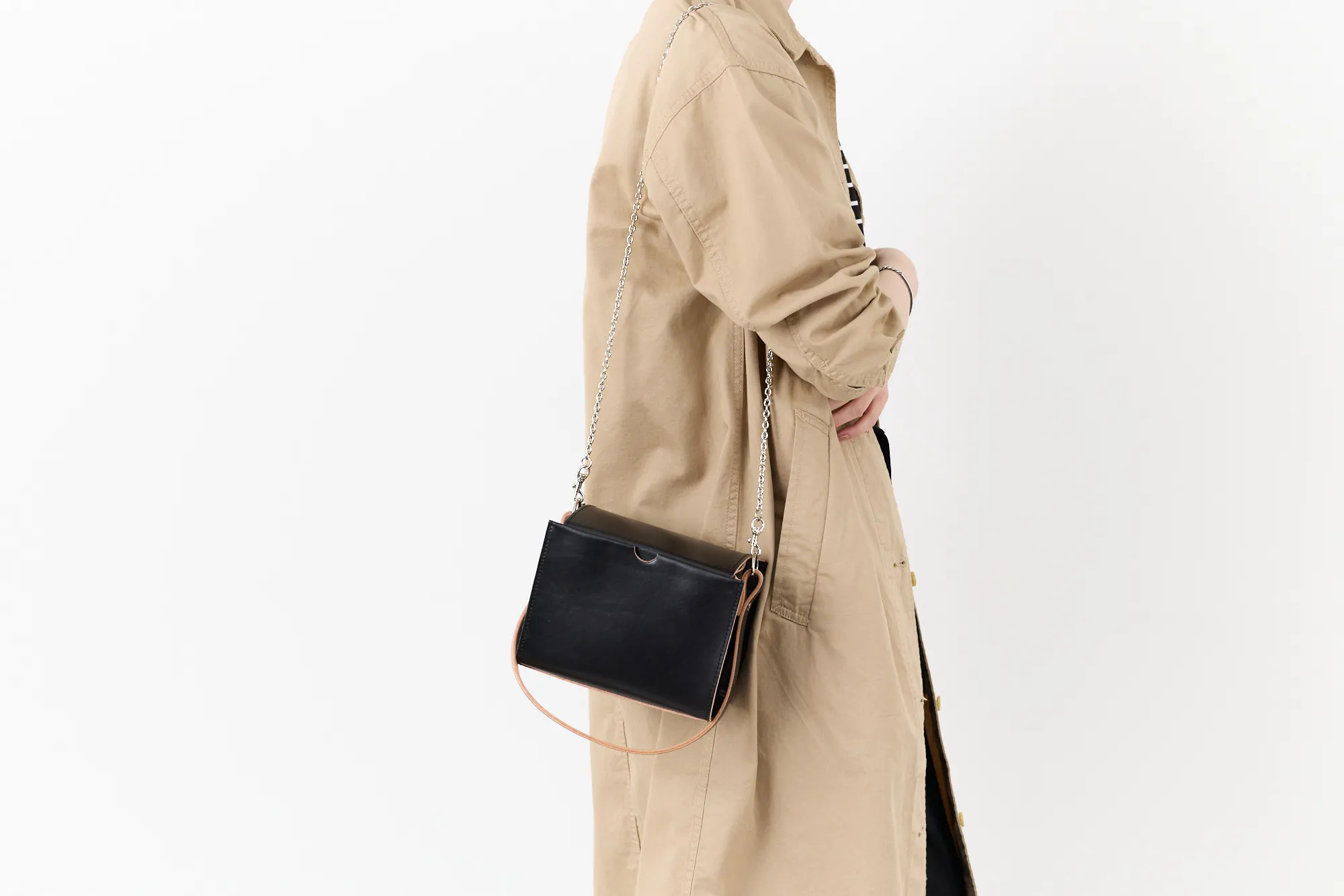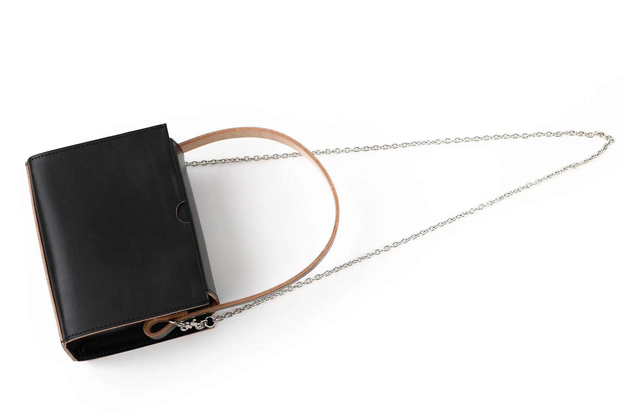 ヌメ革の表面にブラックとシルバーを吹き付けたTIDEWAYオリジナルレザーです。 レザー断面、床面を染めないで、切り口の色をポイントにするようなデザインになっています。クラフト感がありながらモードな雰囲気を漂わせるシリーズです。