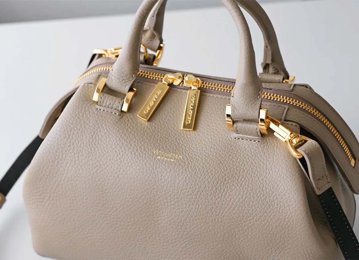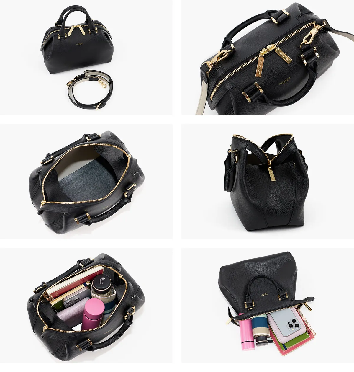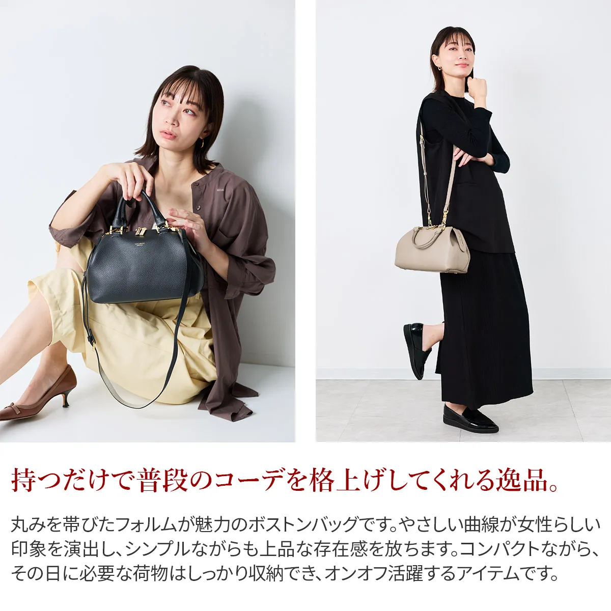 丸みを帯びたシルエットがアイコニックなボストンバッグ。 ゴールド金具を使用し、エレガントな印象を与えてくれます。 開口部は大きく開くダブルファスナーを採用し、視認性に優れ荷物の出し入れもしやすいつくり。 着脱可能なショルダーベルト付きで、その日の気分や装いに合わせて持ち方をアレンジできます。