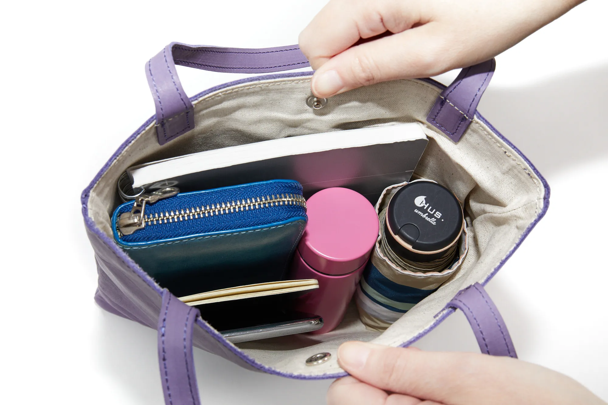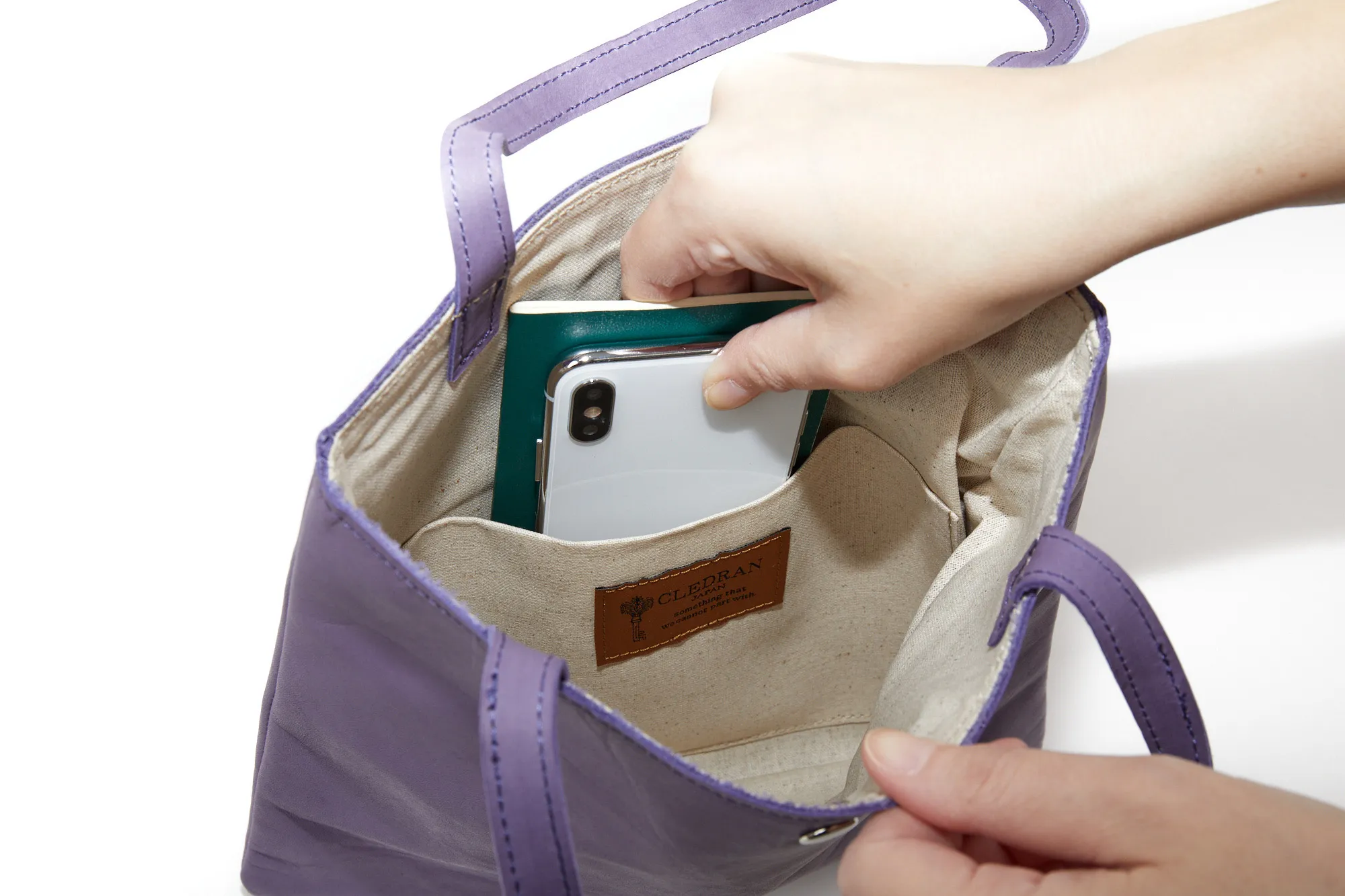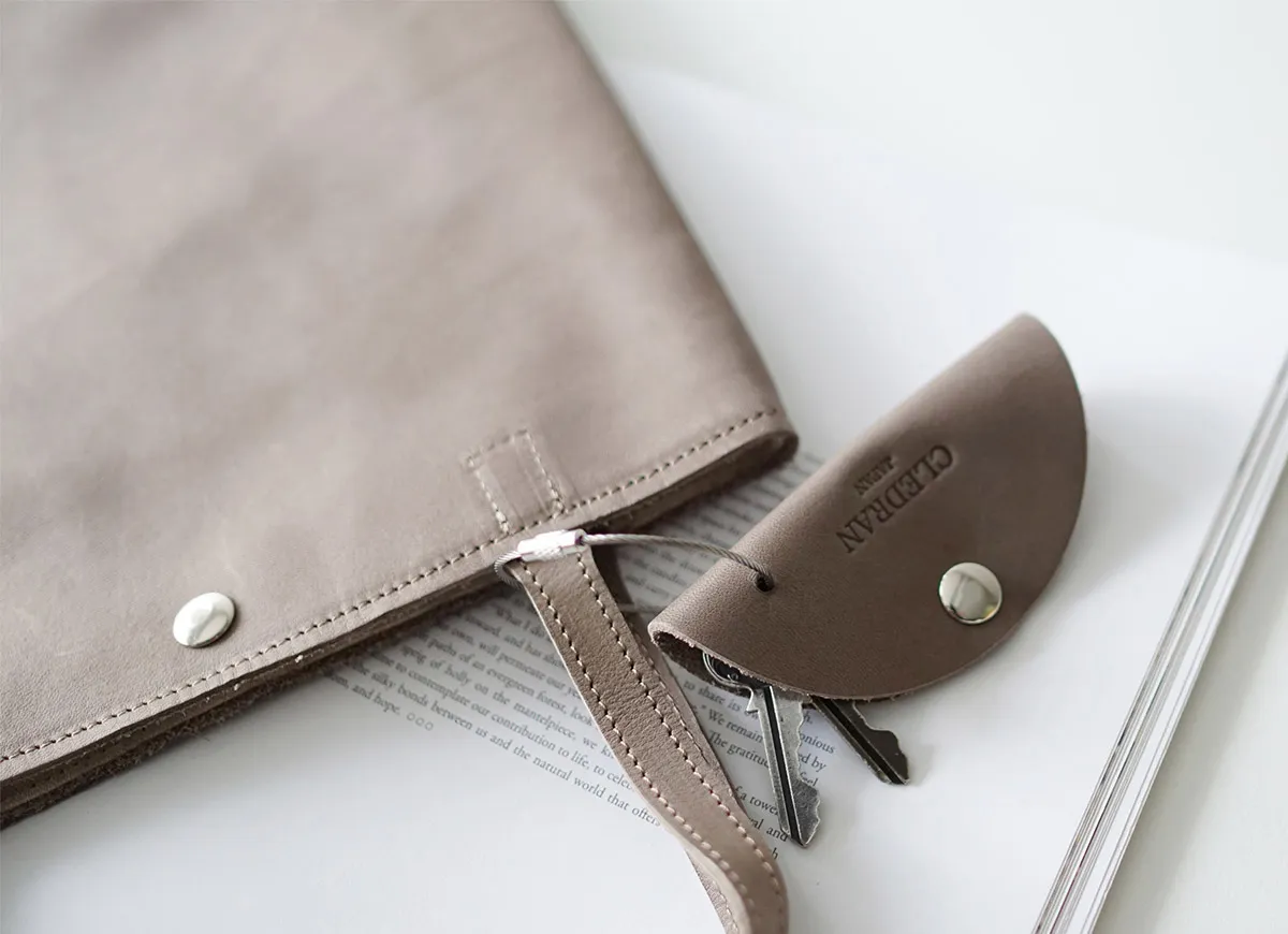 シンプルで洗練されたデザインのトートバッグ。半円形のキーホルダーが付属しており、鍵をまとめられる嬉しい仕様。バッグのちょっとしたアクセントにもなります。軽量でしなやか、触り心地の良いレザーが身体に寄り添う、A5サイズ対応のちょっとしたお買い物に便利なサイズ感のアイテムです。