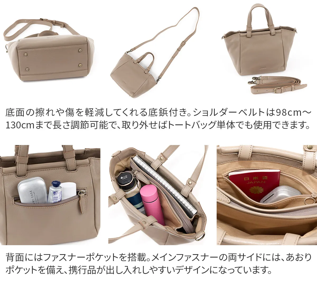 口前にあしらった帯状のふっくらしたデザインがポイントのシリーズ。 軽さが特徴のやぎ革を使用しているので、ハンドバッグ仕立てながら軽量に仕上がっています。 ポケット収納も多く、普段使いに最適です。 軽量でキズが付きにくく、デイリーユースとしても最適な2WAYトートバッグ。 トレンドに左右されないデザイン性と小ぶりなサイズ感は大人可愛い印象に。 コンパクトながらメイン収納部の前後にはあおりポケットを配置。 機能的な仕様で使い心地の良いアイテムとなっています。